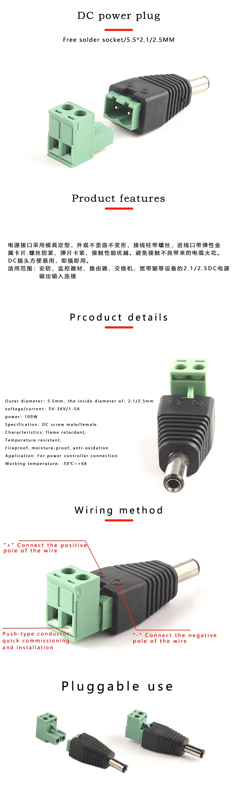 Подключаемый модуль Тип Разъем 5,5 мм * 2,1/2,5 мм Женский Мужской DC Мощность переходник для 5050 3528 5060 Светодиодные ленты и ТВ камеры разъемы