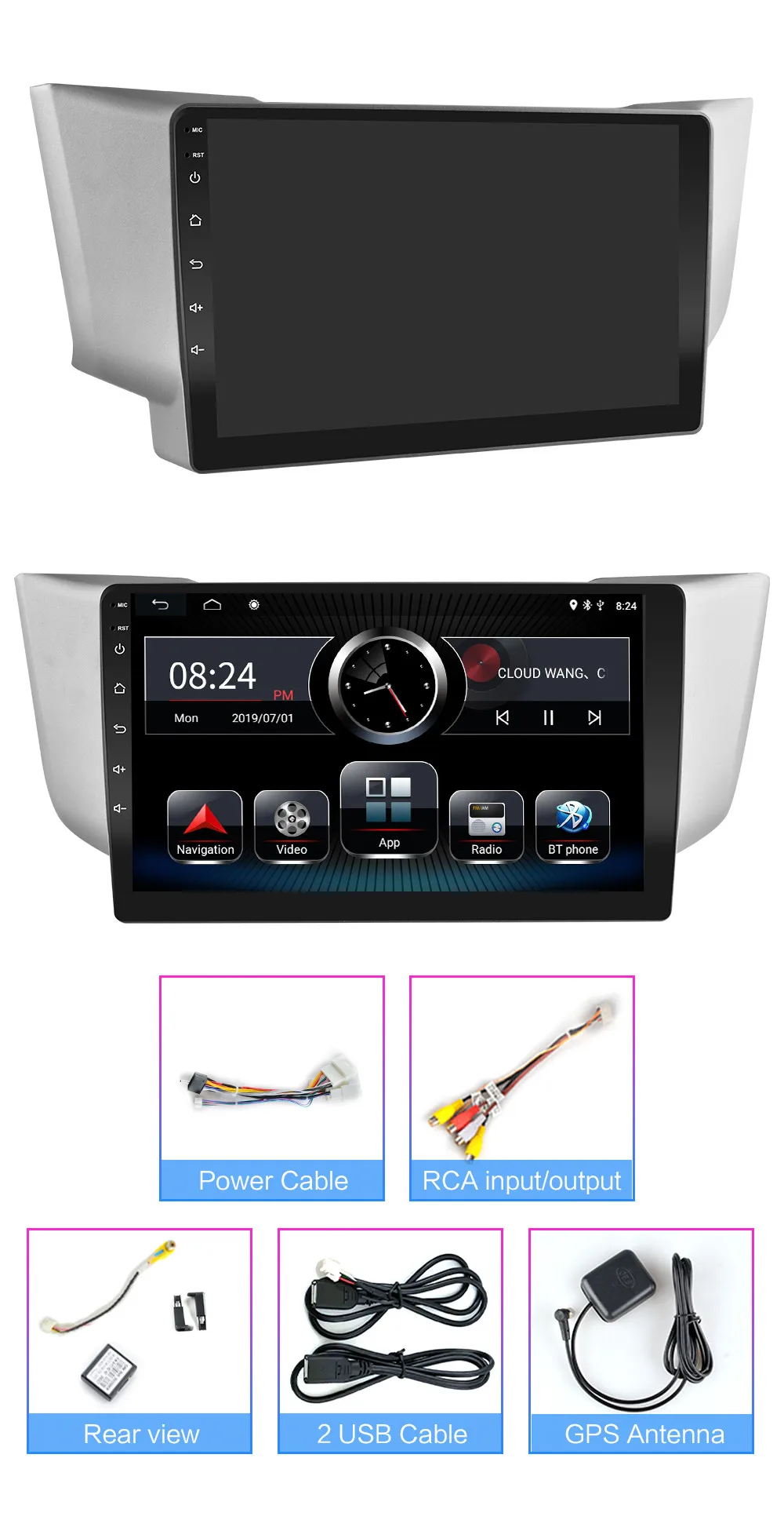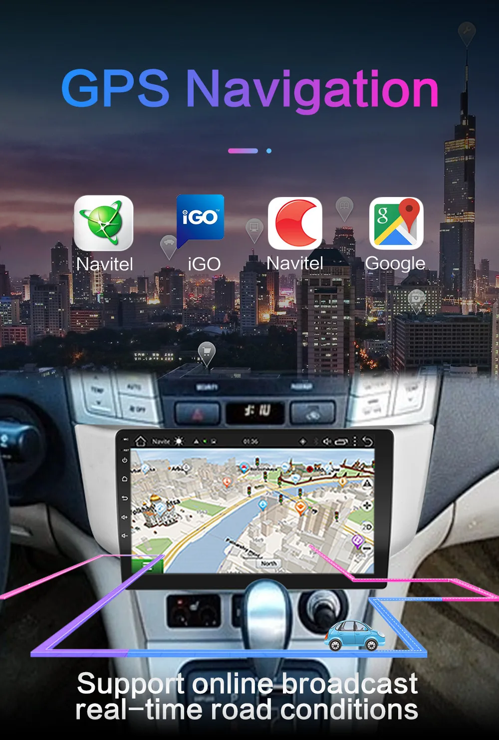 . ОС: Операционная система Android RAM + ROM: 1G + 16G 2G + 32G Поскольку система занимает внутреннюю память, операционная система занимает около 4-6 ГБ памяти. Бесплатная установка карта ЦП: четырехъядерный Поддержка изменения логотипа, пароль заводского набора: 8888, изменение логотипа Разъем питания: подключи и работай Встроенный GPS -Поддержка 2D HD и 3D карт Разрешение: 1024*600 пикселей емкостный экран --- Интернет развлечения, встроенный WiFi модуль. --- Поддержка HD 1080p видеоигр, поддержка зеркального соединения и Airplay. --- Радио: fm-радио Функция двойной зоны (пользователь может слушать музыку или радио в режиме gps-навигации) --- Встроенный Bluetooth handsfree и телефонная книга, поддержка A2DP, воспроизведение музыки напрямую по телефону. (Вы должны согласиться с авторизацией телефона и синхронизировать контактную информацию в настройках телефона) Совместимость с управлением рулевого колеса Электронная и механическая Противоударная система --- Высокомощный стерео аудио выход, поддерживает 4 динамика ---- Поддержка камеры заднего вида inpu
