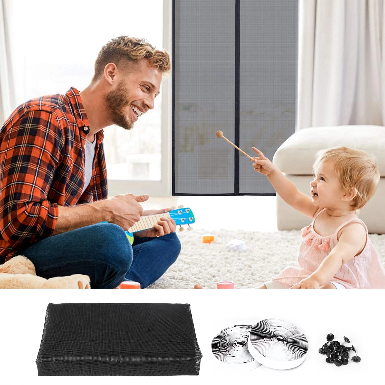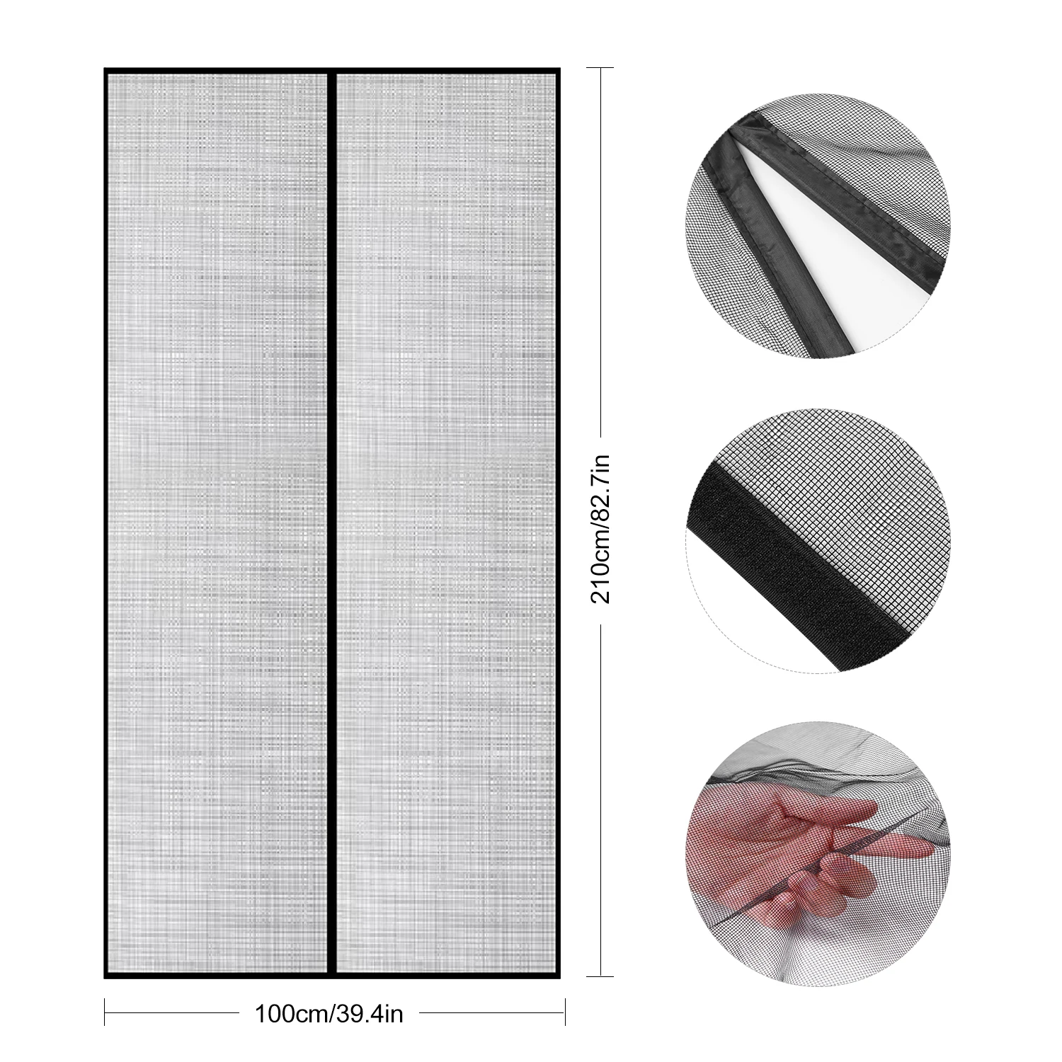 Мощный и изысканный --- есть 18 встроенных магнитов в среднем шве двери экрана, он может держать лучшее уплотнение и закрытие, а также легко открывается. Черная сетка может быть использована в качестве замены для фиксации двери экрана и хорошо сочетается с вашим домашним украшением.