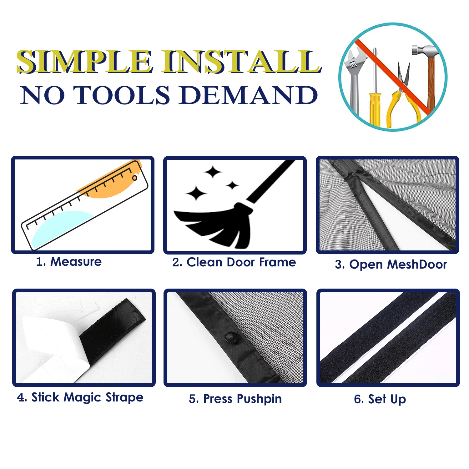 Простота установки --- без сверления, никаких инструментов не требуется. Поставляется с волшебной полоской и штифтом,Просто снимите клейкую подложку и приложите к дверной раме.
