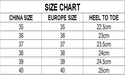 Для информации о размере, пожалуйста, обратитесь к таблице размеров ниже, мы измеряем его в соответствии с внутренней длиной обуви