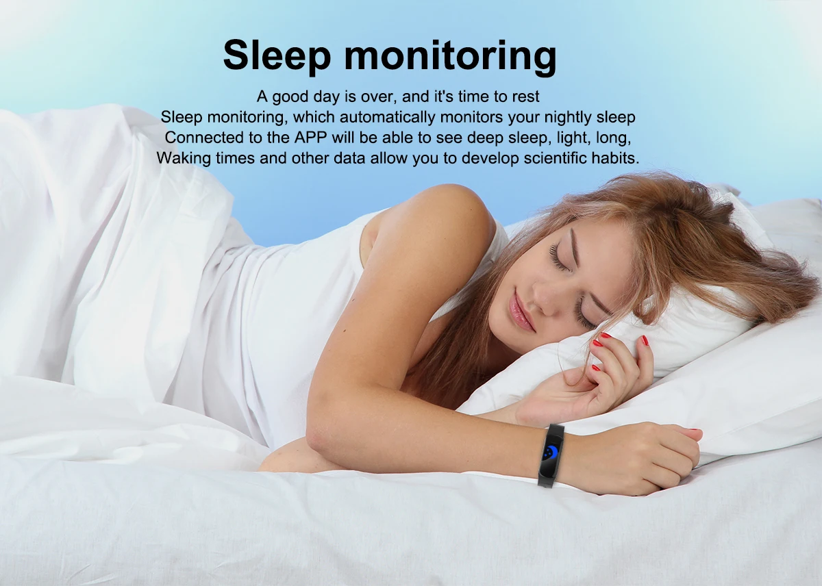 Динамический мониторинг сердечного ритма и сна: Фитнес-трекер может отслеживать динамическую частоту сердечных сокращений и загружать данные сердцебиения в реальном времени в мобильное приложение. Он также поддерживает автоматический мониторинг сна, который может записывать глубину, светильник, время бодрствования и все время сна. Все данные о состоянии здоровья отображаются на диаграмме, которая четко показывает ваше физическое здоровье в течение дня.