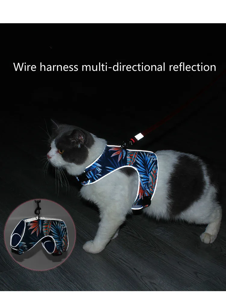 Товары для домашних животных, поводок для кошек, поводок для домашних животных, Светоотражающий поводок из полиэстера с принтом, липучка, пряжка, дизайн, защита от потери Номер товара: 76236 Тип изделия: жгут для домашних животных Материал изделия: полиэстер Размер изделия: XS,S,M,L