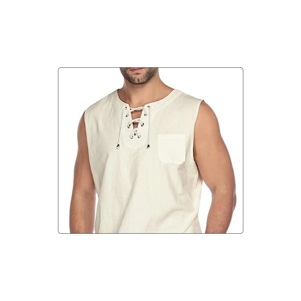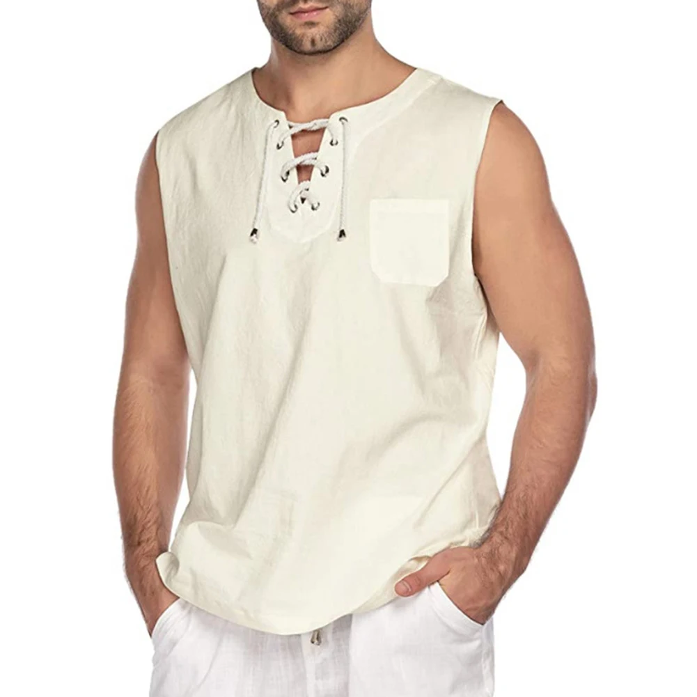 Повседневная Летняя мужская однотонная майка без рукавов с v-образным вырезом и бандажным карманом
