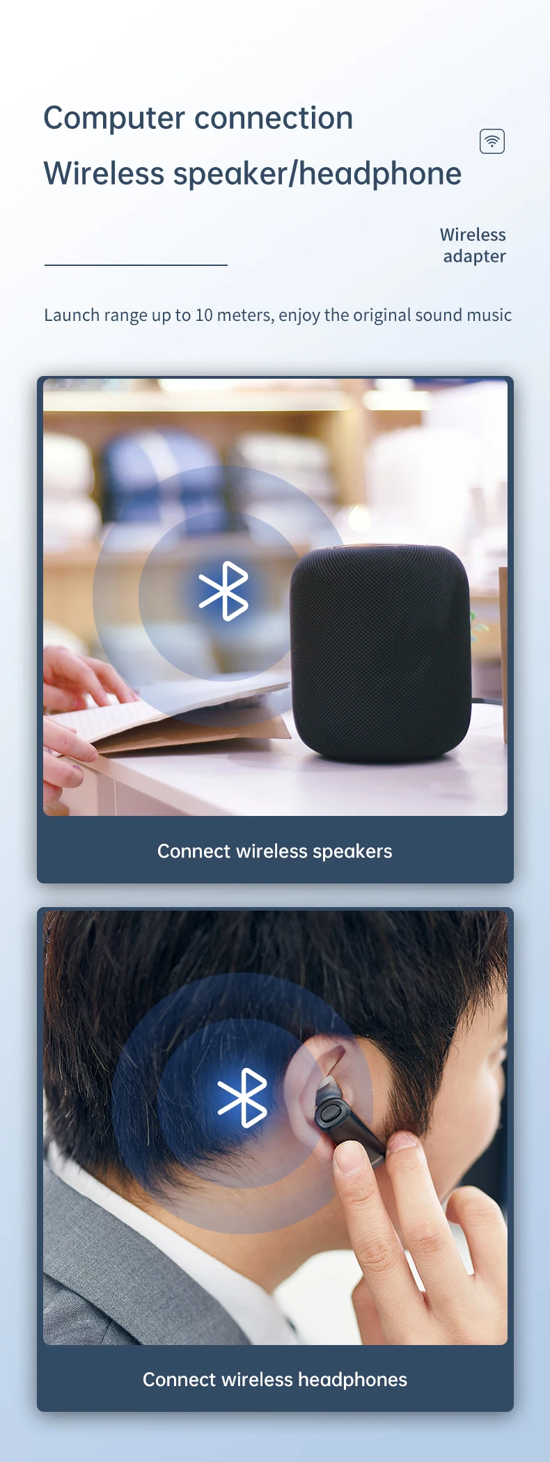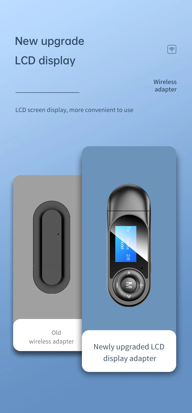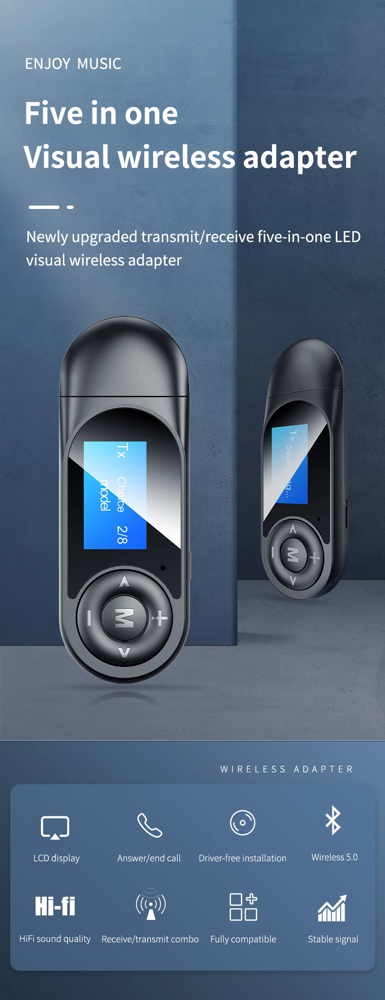 1. Дизайн ЖК-дисплея: Bluetooth-передатчик и приемник с ЖК-дисплеем. Вы можете получить всю информацию о статусе беспроводной трансляции с помощью простого взгляда на экран. Показывает состояние подключения по Bluetooth. 2.BLUETOOTH 5. 0 Приемник: установлен с помощью Bluetooth 5. Чип 0, новый беспроводной музыкальный приемник VAOLRO обладает непревзойденной производительностью с в 2 раза более высокой скоростью передачи, повышенной стабильностью соединения и более широким диапазоном сигнала в 10 м, чем в более старой версии. 3. Совместимость с BLUETOOTH: Этот аудио Bluetooth адаптер поддерживает 3,5 мм aux аудио, а также совместим со всеми смартфонами, bluetooth аудио устройств (Bluetooth наушники, Bluetooth колонки и многое другое). 4. Режим приемника передатчика: дизайн 2 в 1, с помощью этого беспроводного адаптера, вы можете отправить и получить все аудио свободно и легко. Передатчик позволяет вашему телевизору, AV-ресиверу, радио и другим устройствам домашнего источника звука транслировать музыку на наушники или колонки Bluetooth; приемник позволяет устройствам, не работающим по Bluetooth, например, вашим домашним стерео или AV-ресивером, передавать музыку по беспроводному каналу с вашего мобильного телефона/ПК. 5. Чистый звук: A2DP поддерживает голосовые подсказки, получает высококачественный аудио звук, предлагает вам 30 футов Рабочий диапазон с хорошей производительностью, дает вам хороший опыт при ответе на телефонные звонки или просмотре поздних ночных шоу. Для того, чтобы получить чистый звук, рекомендуем не использовать Bluetooth-передатчик-приемник 3,5 мм во время зарядки. 6. Функция беспроводной связи: хотите посмотреть игру Футбол/Бейсбол/бокс/Гольф/NBA поздно ночью, не разбудив никого? Это отличный выбор для вас. Функция Bluetooth-передатчика передает аудио на Bluetooth-колонки или наушники с вашего телевизора или более старых мультимедийных устройств, таких как портативные CD-проигрыватели, в которых отсутствует Встроенный Bluetooth. 7. С микрофоном: режим приемника с микрофоном, звонки громкой связи HD.