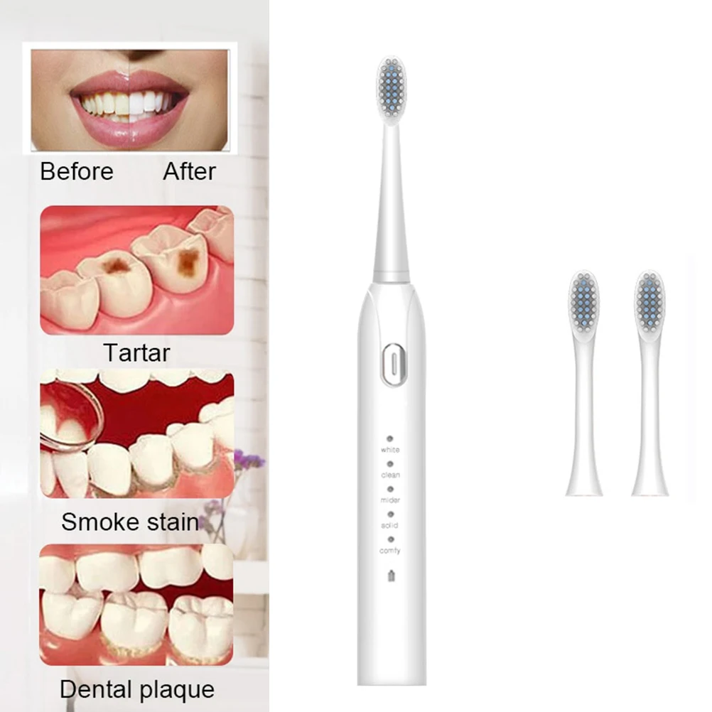 Электрическая зубная щетка x 1, насадки для зубных щеток x 2, руководство пользователя x 1, зарядный кабель x 1