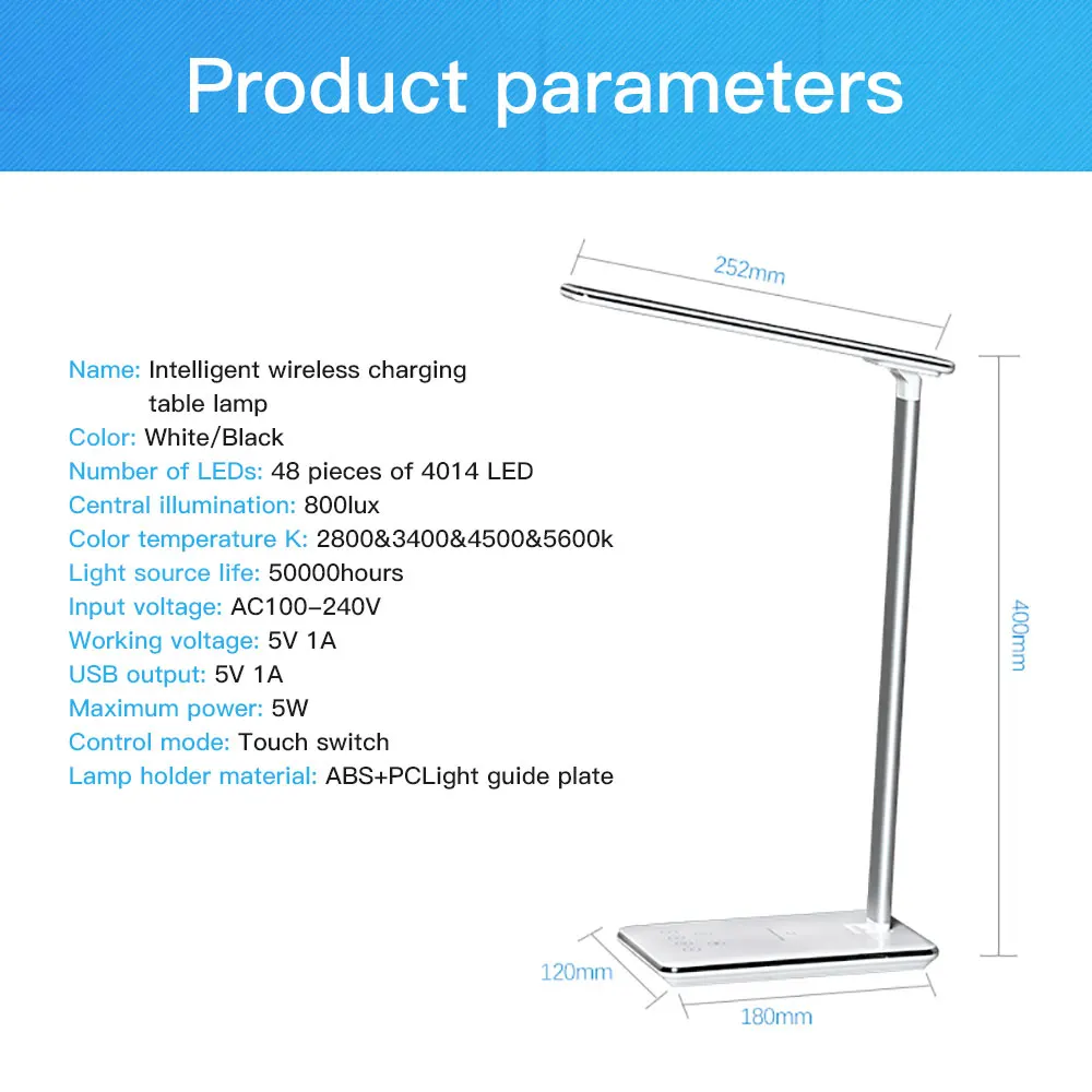 -Многофункциональная настольная лампа, поддержка беспроводного зарядного устройства Qi, она может заряжать ваше устройство во время чтения в ночное время, избегайте подкручивания любых зарядных кабелей.