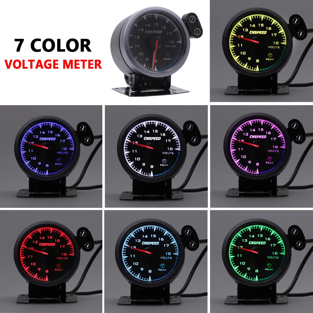 2 дюйма/52 мм 7 Цветной светодиодный вольтметр для автомобиля, универсальный калибровочный Измеритель для дымовых линз