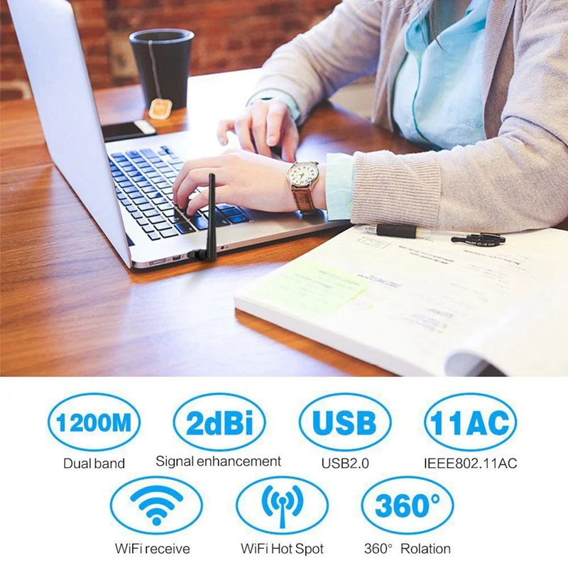 Горячая точка и один ключ безопасности: если ваш компьютер находится под проводным подключением к Интернету, вы можете прийти в режим AP и создать wifi сигнал для ваших смартфонов и мобильных устройств. WEP/WPA/WPA2/WAPI/WPS один ключ безопасности. Двухдиапазонный 802.11AC 1200 Мбит/с Беспроводная скорость двухдиапазонный 802.11AC 1200 Мбит/с USB WiFi адаптер позволяет подключаться к 5 ГГц 867 Мбит/с и 2,4 ГГц 300 Мбит/с, обеспечивает передачу hd-видео без задержек и высокоскоростную онлайн-игру.