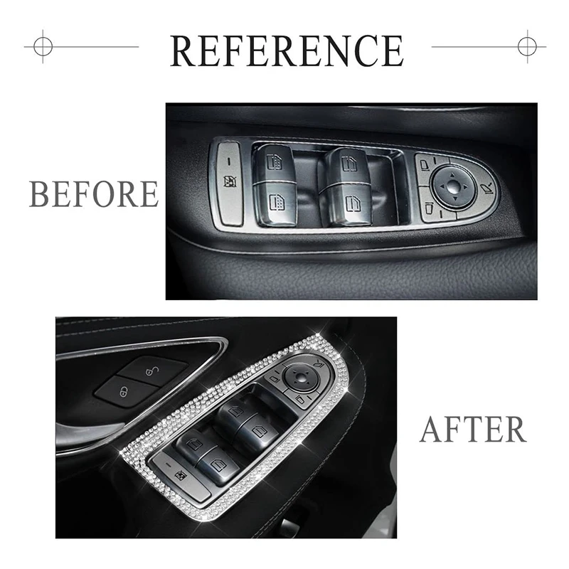 4 шт., автомобильные блестящие Серебристые чехлы на кнопки управления окном, наклейки для Mercedes Benz C Class W205 GLC