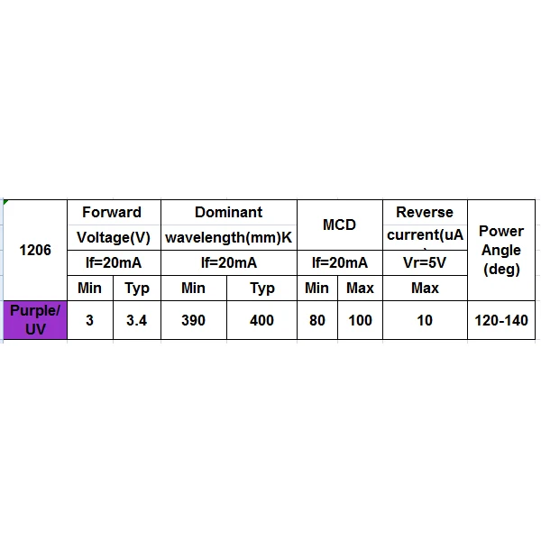 100% новый и высокое качество. Тип: 1206 фиолетовый Размеры: 3,2 мм (L) x 1,6 мм (Ш) х 0,8 мм (H) Форма изделия: как на изображении Посылка включает в себя: 3000 штФотографии товара