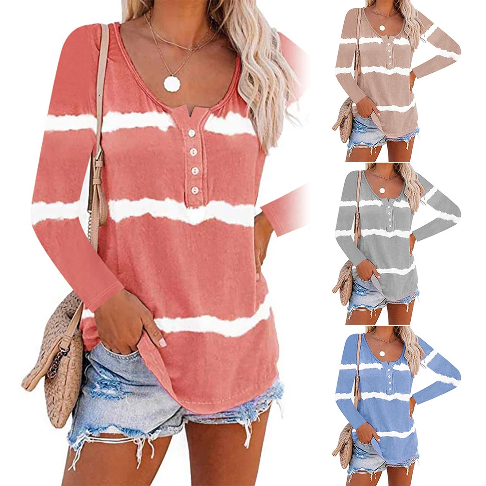 Женская Повседневная Блузка с круглым вырезом и длинным рукавом градиентного цвета на пуговицах