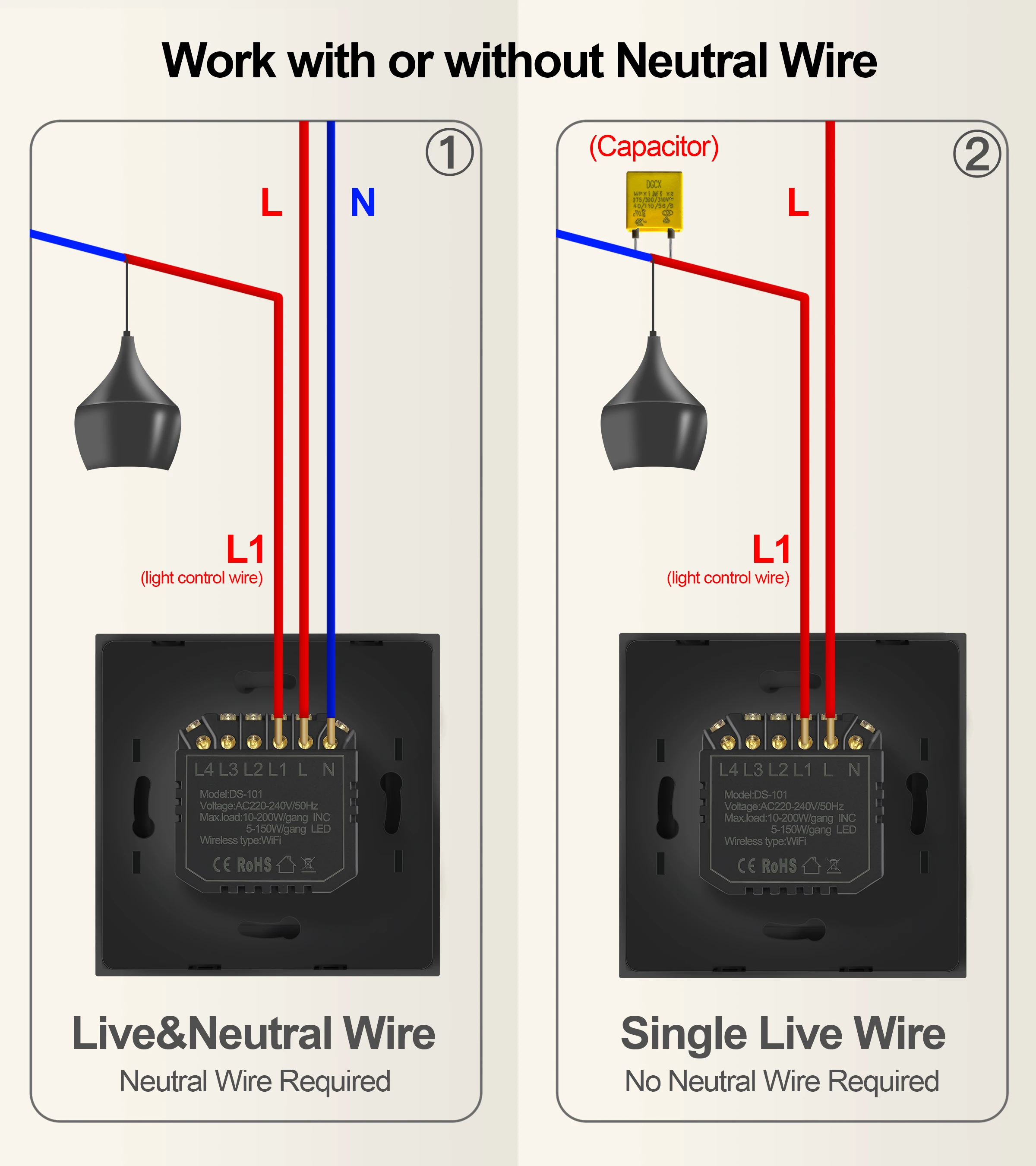 Управляйте умным выключателем света в любом месте и в любое время с помощью бесплатного приложения «Tuya smart или Smart Life», если у вашего смартфона есть сигнал Wi-Fi или 4G. Не поддерживает 5G.