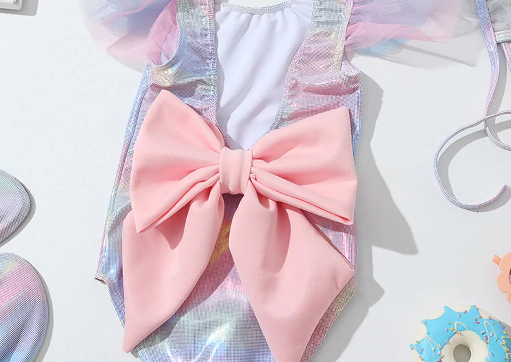 Купальный костюм с оборками и блестками для маленьких девочек; Купальный костюм; Пляжная одежда