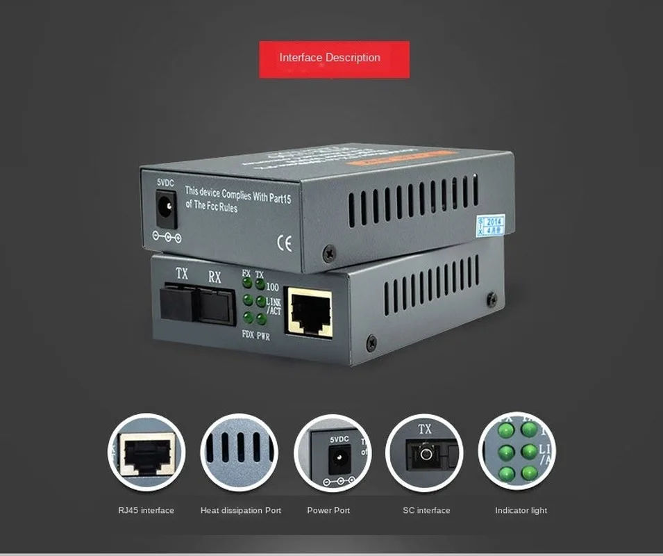 2, мощная функция, стабильность сигнала: 1 RJ45 и один оптический порт SC волокна, реализовать преобразование фотоэлектрического сигнала между нитью и волокном.