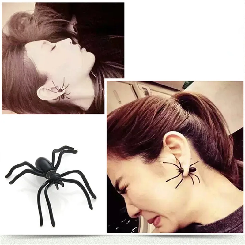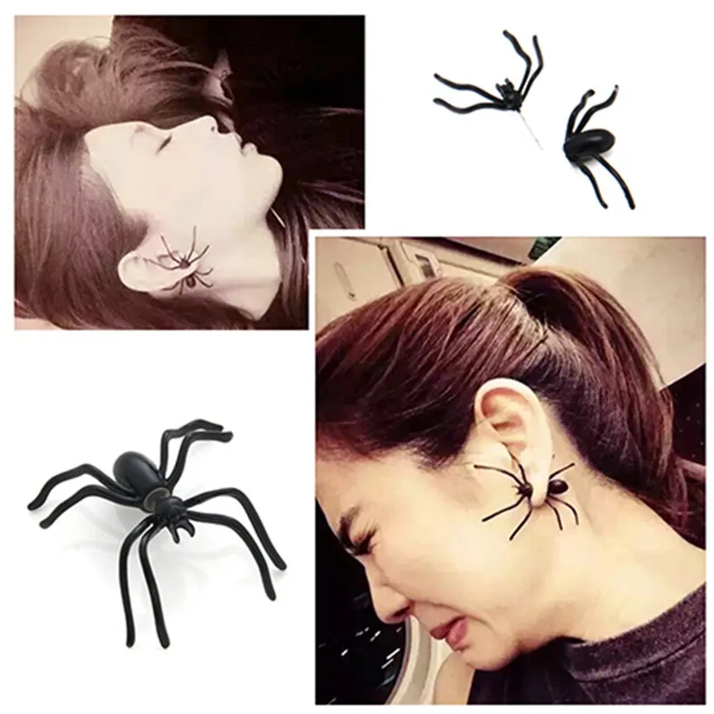 Harajuku Большой черный паук пирсинг ювелирные изделия серьги.