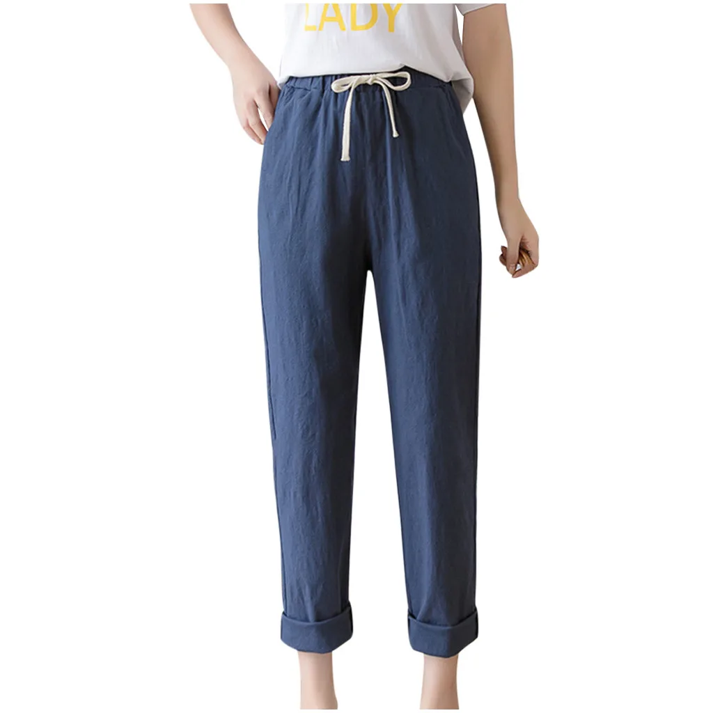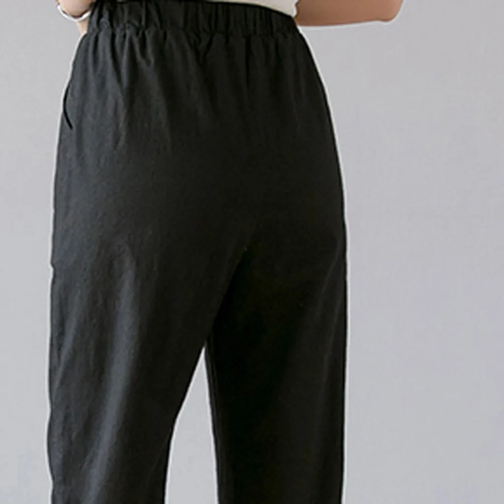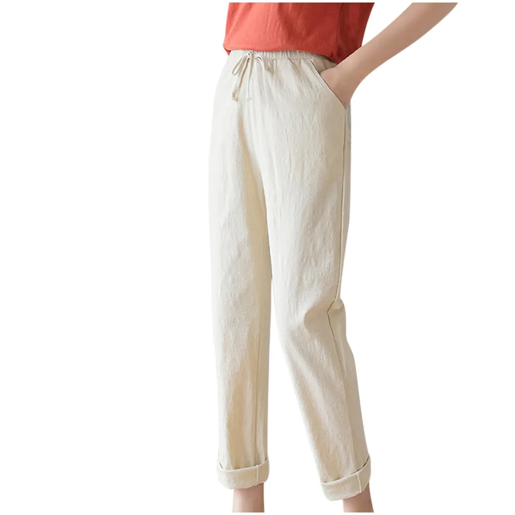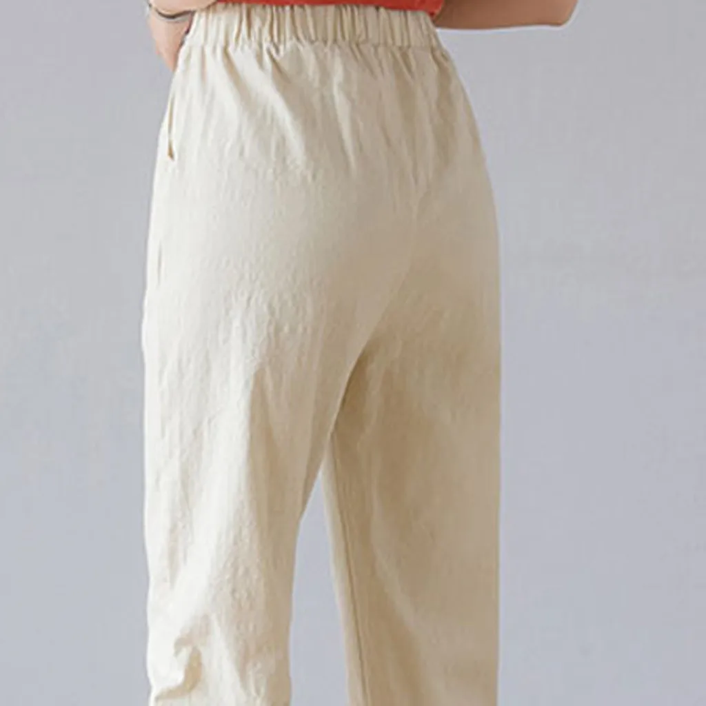 Women's High Waist Linen Loose Casual thin Wide Leg Linen Cropped Pants