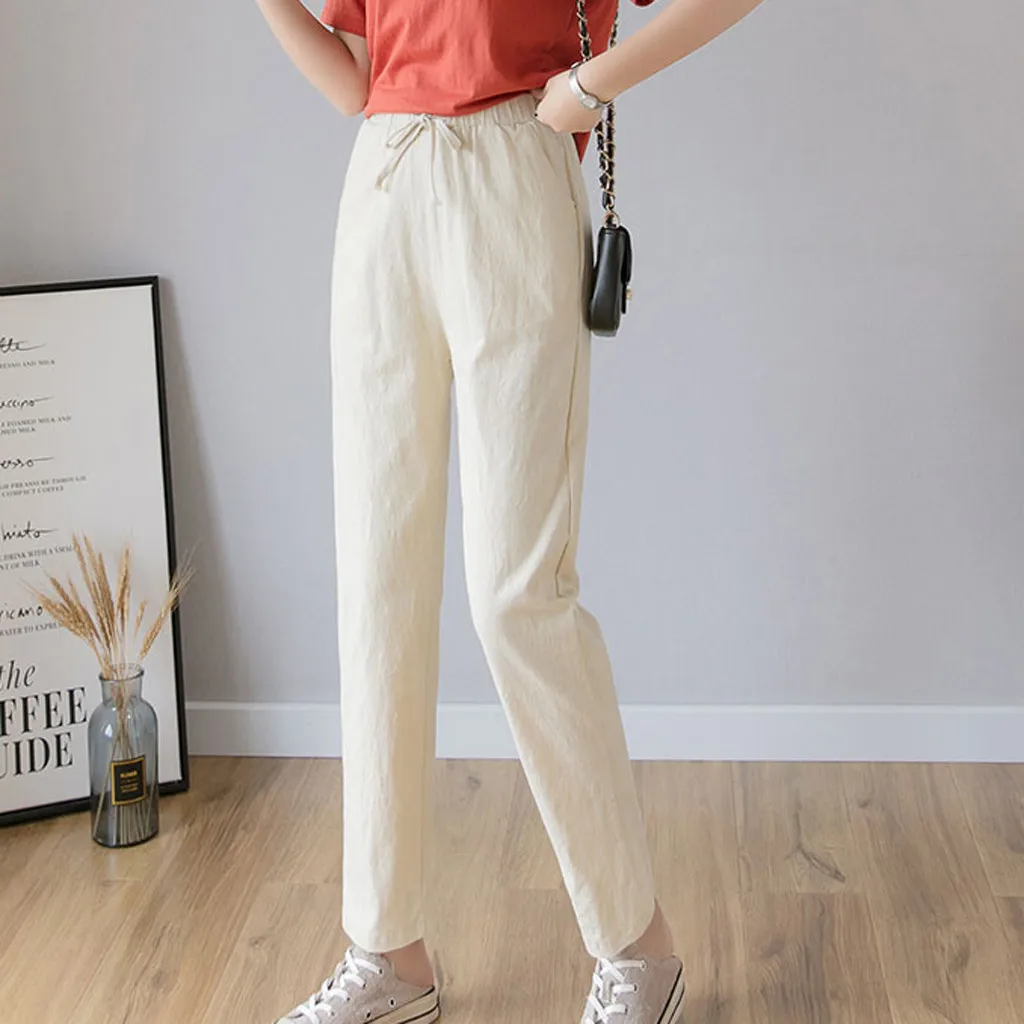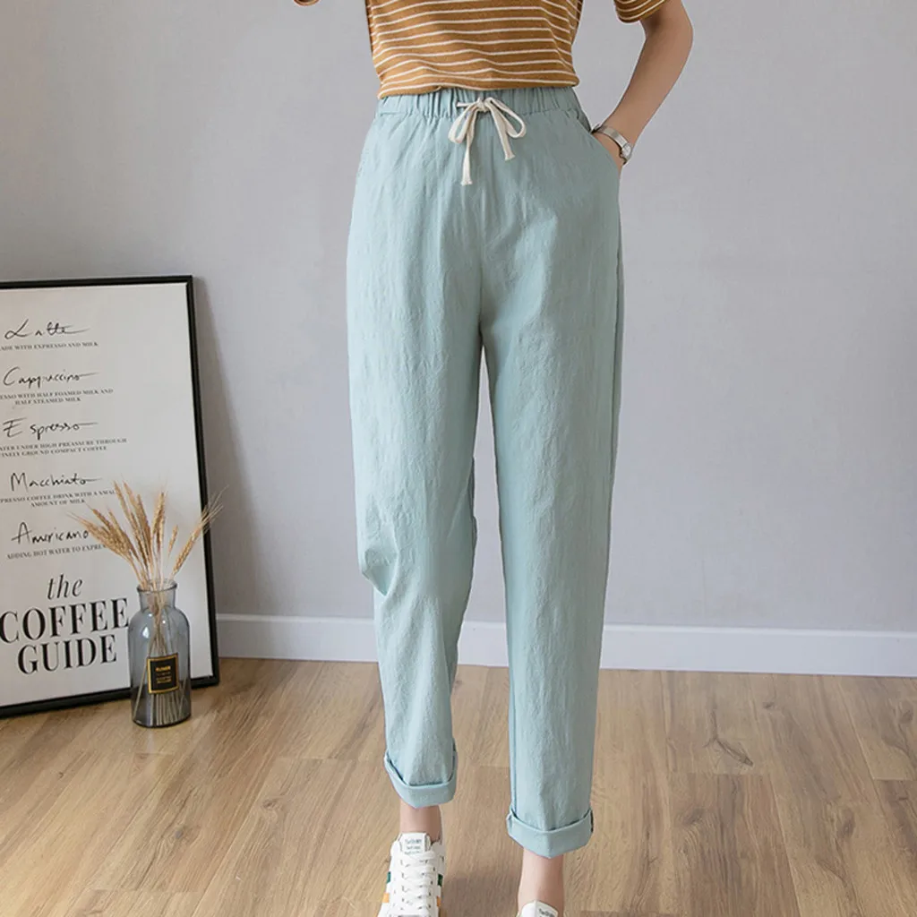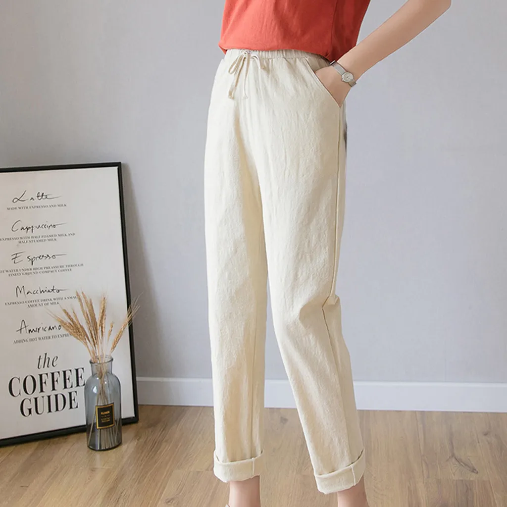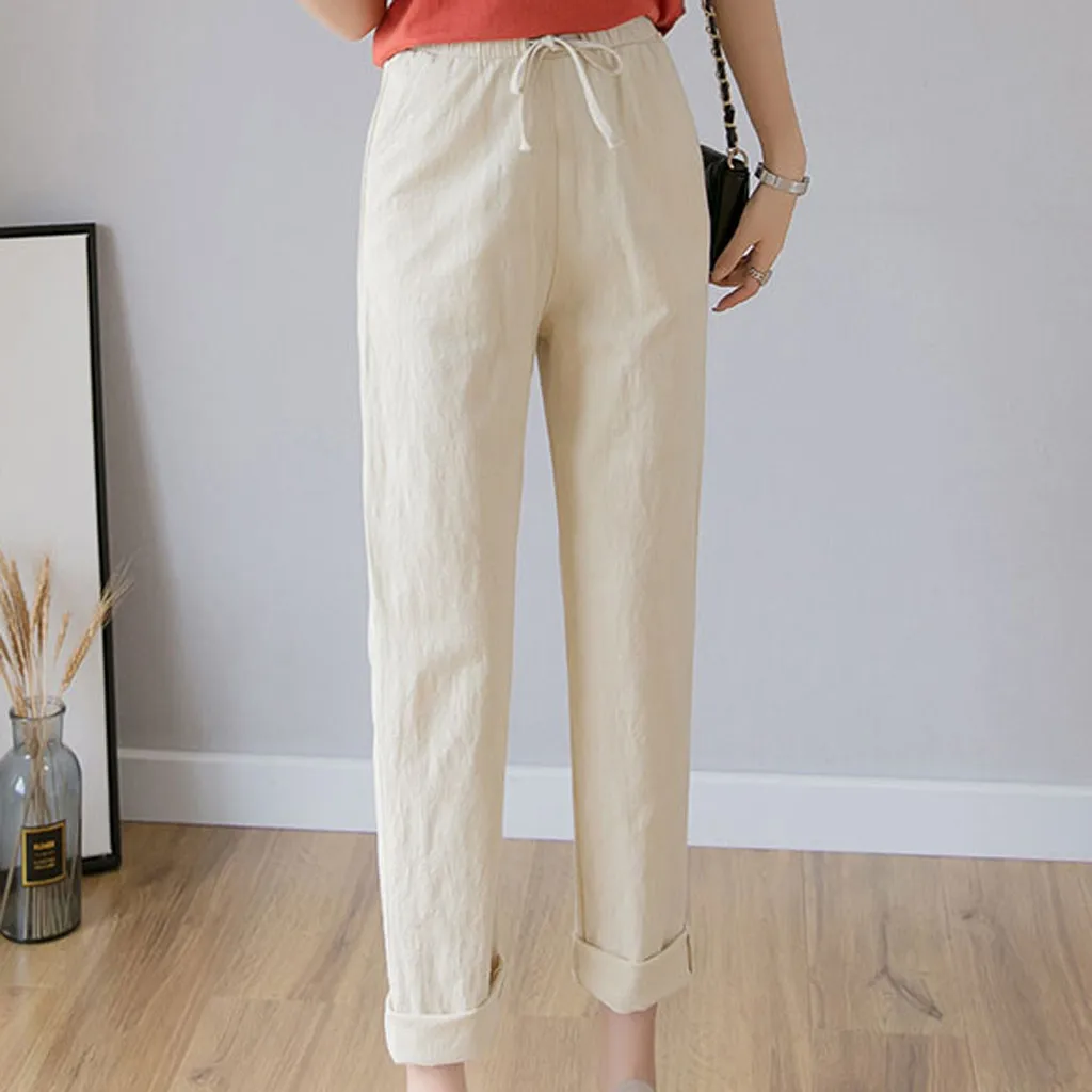 Women's High Waist Linen Loose Casual thin Wide Leg Linen Cropped Pants