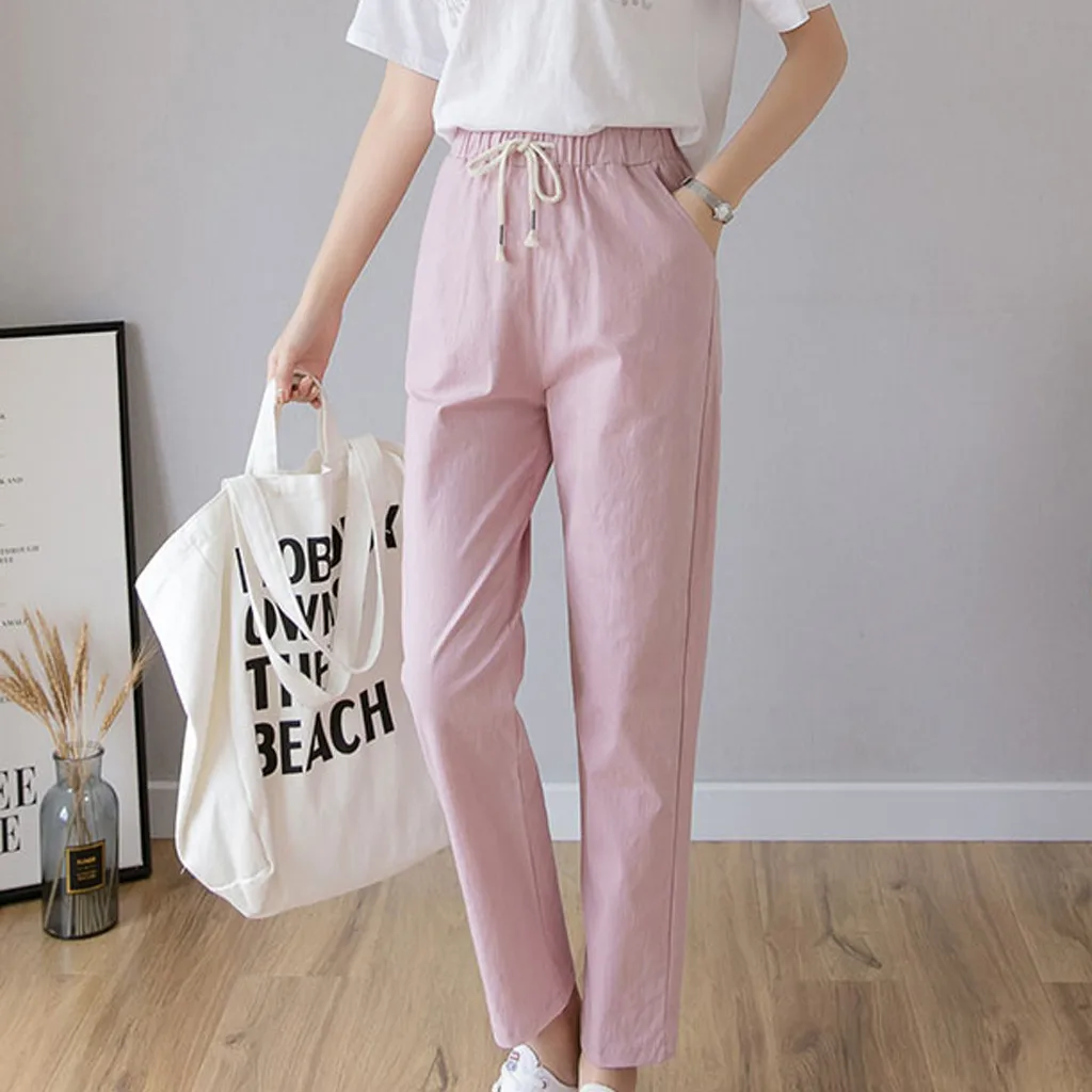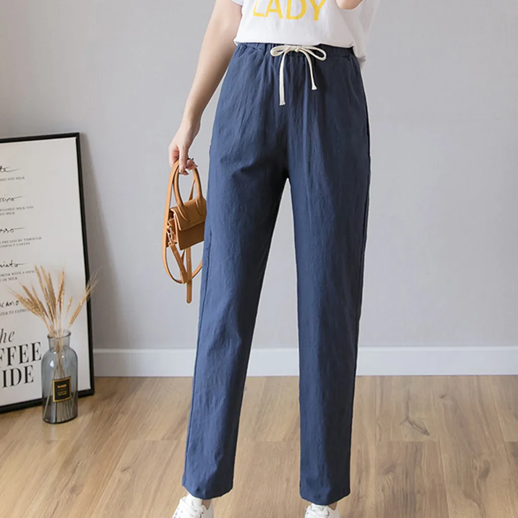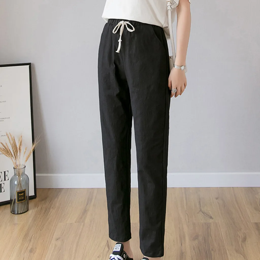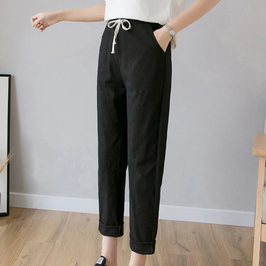 Women's High Waist Linen Loose Casual thin Wide Leg Linen Cropped Pants