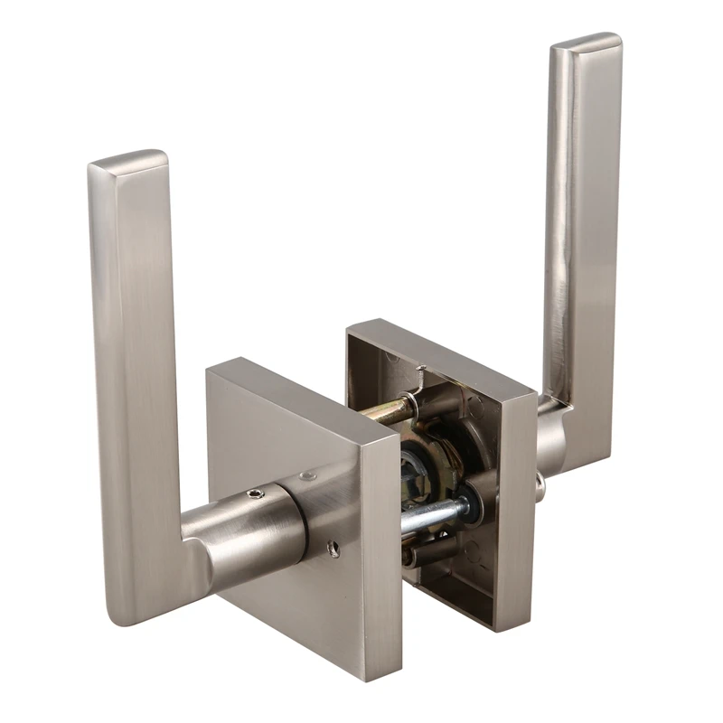 Эта ручка двери премиум класса имеет специальную квадратную форму и имеет потрясающее атласное никелевое покрытие. Аппаратный компонент полностью оснащен регулируемой защелкой 60/70 мм. И радиус углового удара.
