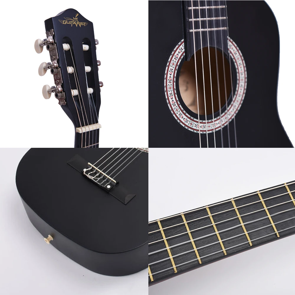 30 дюймов Классическая гитара, 6 струн, липа, гитара, черная гитара для начинающих, сумка для выступлений, Капо струны, тюнер CGT301
