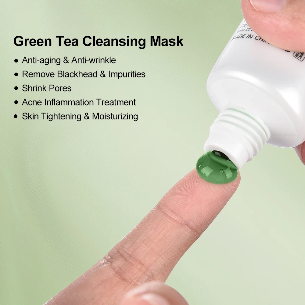 1. Натуральный и мягкий экстракт зеленого чая может глубоко проникать в нижнюю часть кожи для непрерывного пополнения кожи и эффективного растворения черных точек и жира для длительного увлажнения ухода за кожей и глубокого очищение пор.