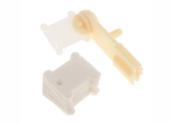 Во-первых, вставьте версию обмотки в зазор фиксированной пластины, выровняйте положение отверстия, вставьте фиксированную пластину, затем вставьте намоточную машину в y-образный пластиковый край швейной коробки, вставьте нить для вышивки в зажимной паз пластины резьбы, поверните ручку, чтобы накрутить нить