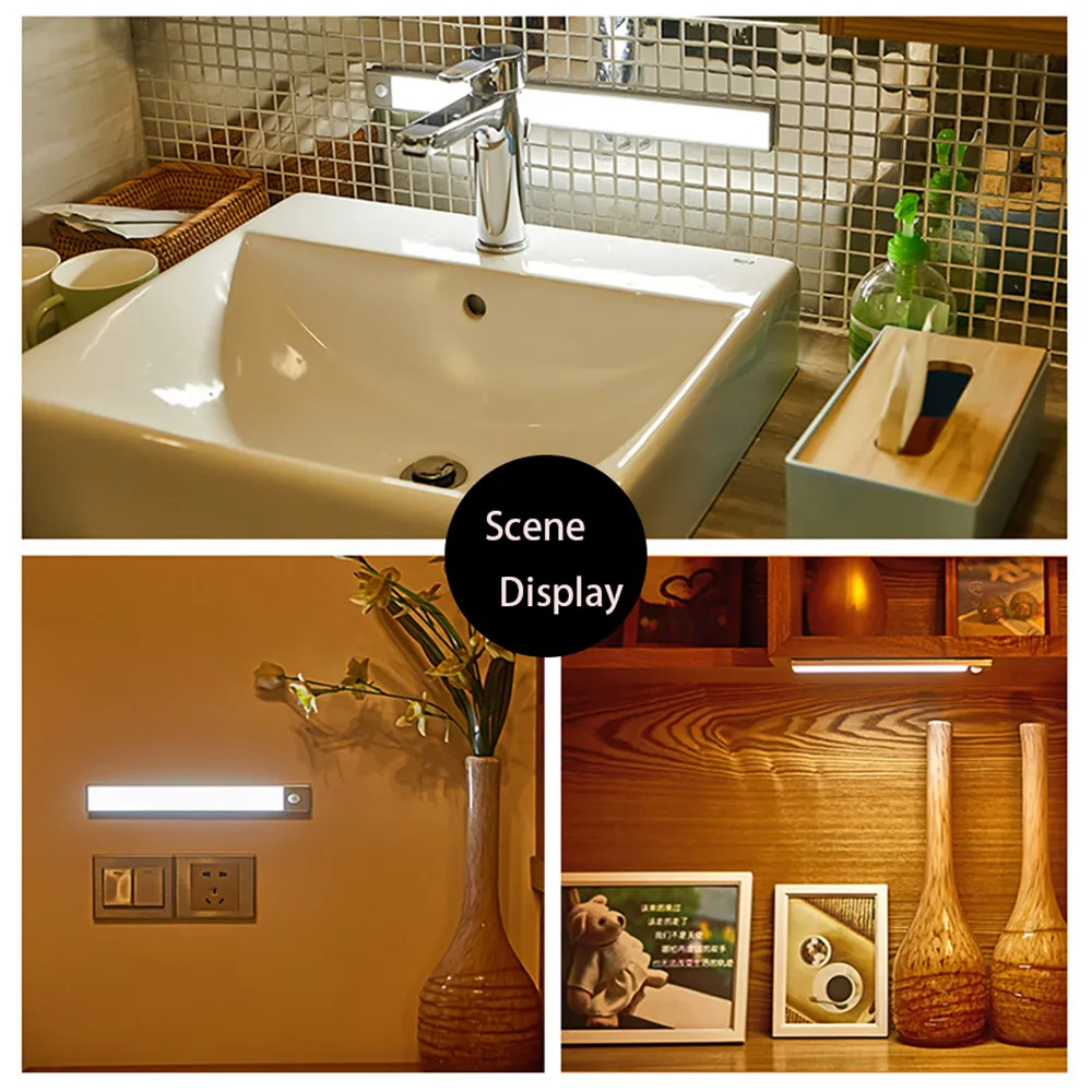 Ультра-тонкий PIR датчик движения светильник светодиодный шкаф светильник USB Перезаряжаемый шкаф ночной Светильник для кухни настенный светильник
