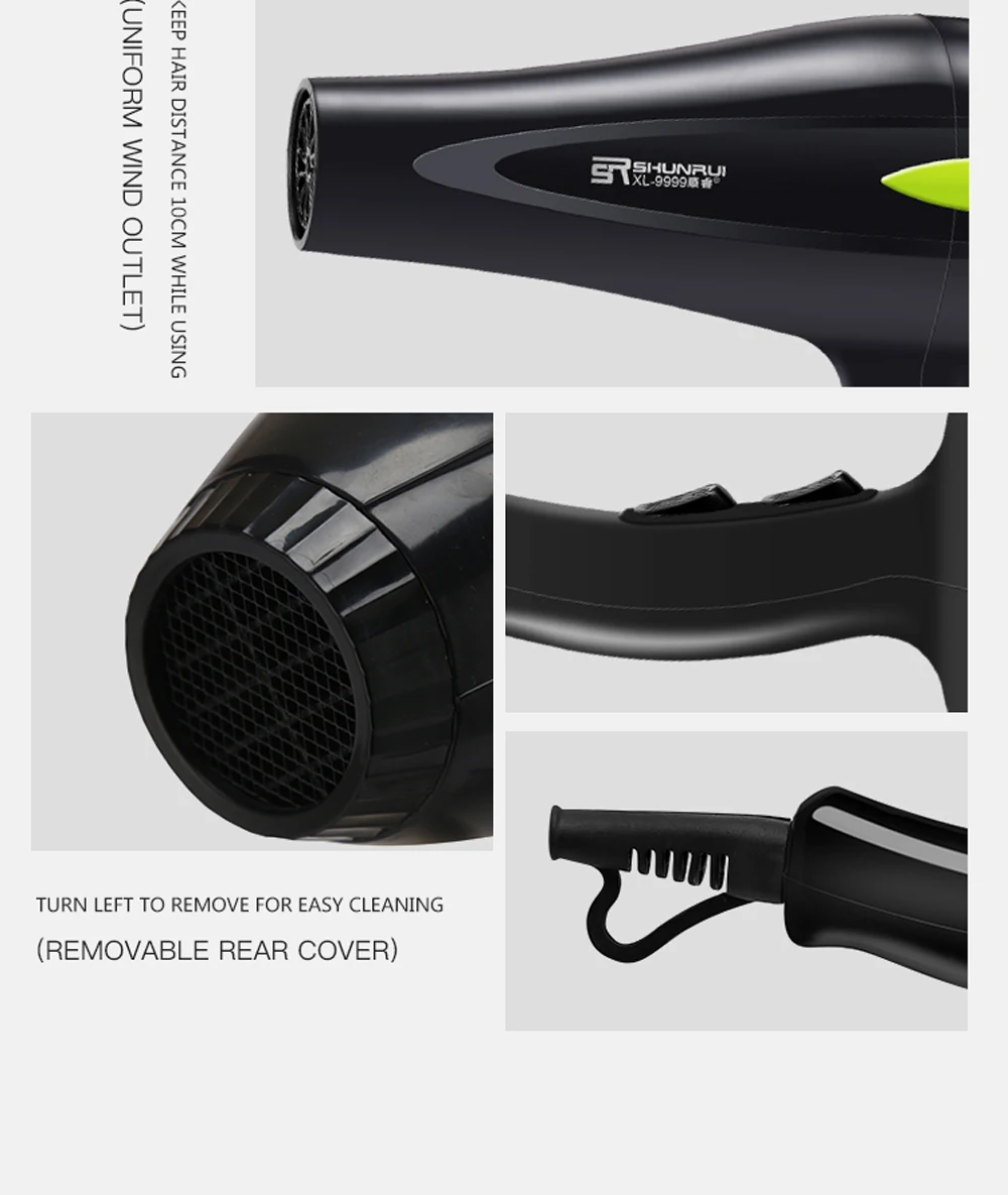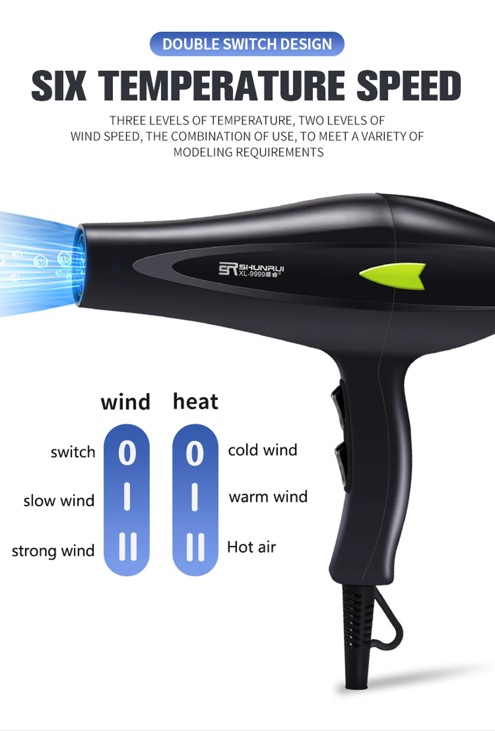2 скорости и 3 настройки тепла, пусть ваши волосы сохнут и укладываются гибкими. Кроме того, есть крутая кнопка для формирования волос. Большая мощность, быстро высушите волосы. Синий светильник с функцией отрицательных ионов hydra, который может помочь зафиксировать влагу волос, уменьшить статическое и завивательное состояние волос, сделать ваши волосы здоровыми, гладкими и блестящими. С подвесным дизайном петли, вы можете повесить его там, где вы хотите после использования, экономия пространства и удобно для хранения. Съемная задняя крышка, двойной слой ветрового отверстия, легко моется и может предотвратить попадание волос, пыли и т. Д. В корпус машины. Примечание: Только для стран, где напряжение составляет 220-240 в, а не для этих напряжений 110-120 В. Этот прибор должен использоваться только на человеческих волосах, не может использоваться на синтетических волосах или париках. Пожалуйста, Регулярно очищайте вход/выход ветра, чтобы обеспечить плавную вентиляцию. Пожалуйста, держите руки сухими при использовании. Не используйте это устройство рядом с ванной, душевой кабиной, раковиной или другими контейнерами, заполненными водой. Рекомендуется присматривать за взрослыми, если этот фен предназначен для использования детьми. Параметры: Материал: АБС-пластик Шестерня: 2 ветряных редуктора s; 3 температурных редуктора s Напряжение: 220-240 В Частота: 50/60 Гц