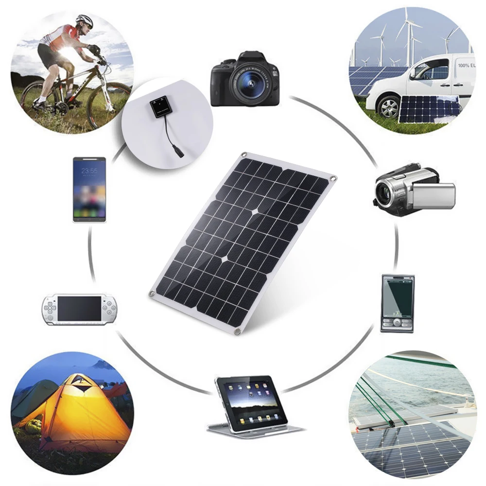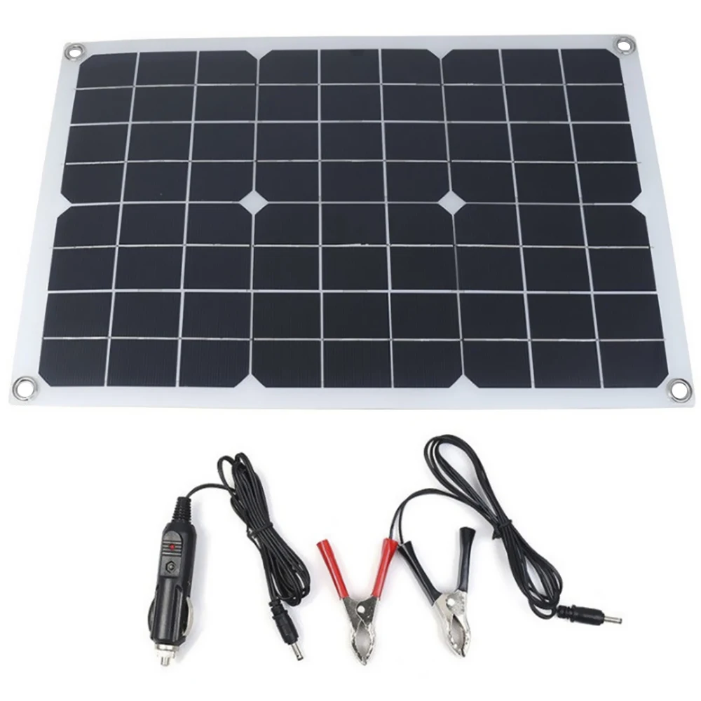 Этот набор солнечных панелей мощностью 20 Вт является идеальным решением для использования на открытом воздухе. Эта посылка поставляется с солнечной панелью, usb-хаб, автомобильным зарядным кабелем, зажимным зарядным кабелем и 4 присосками, что позволяет заряжать несколько устройств, включая мобильные телефоны, планшеты, цифровые камеры.