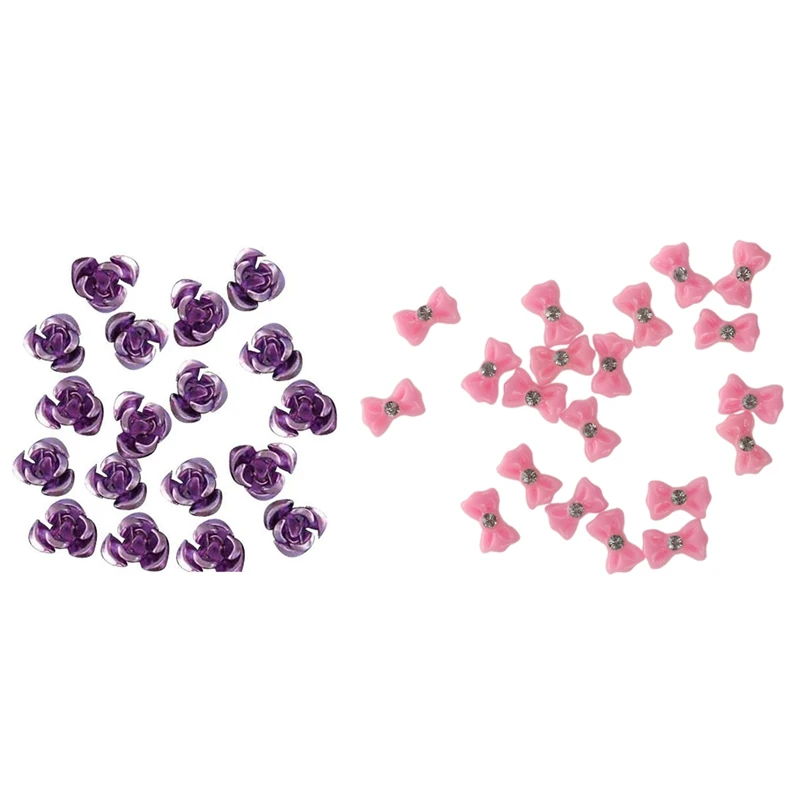 20 шт 3D наклейки для ногтей арт-деко со стразами Arc Pink с 50 шт 8 мм фиолетовые алюминиевые бусины алюминиевые розы