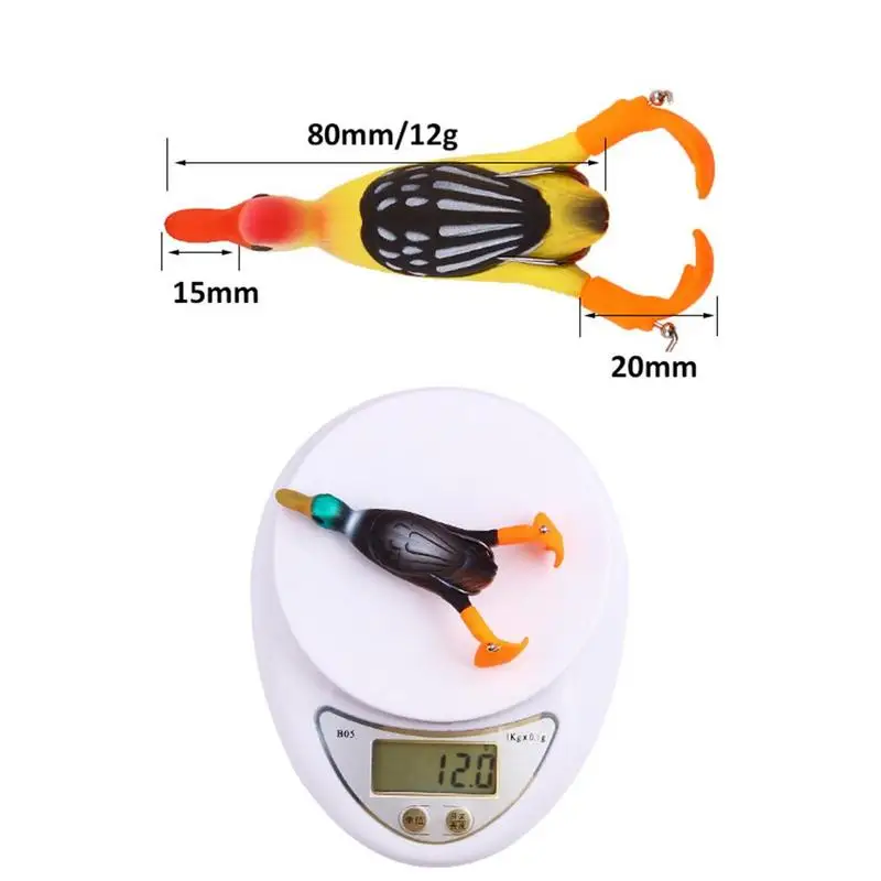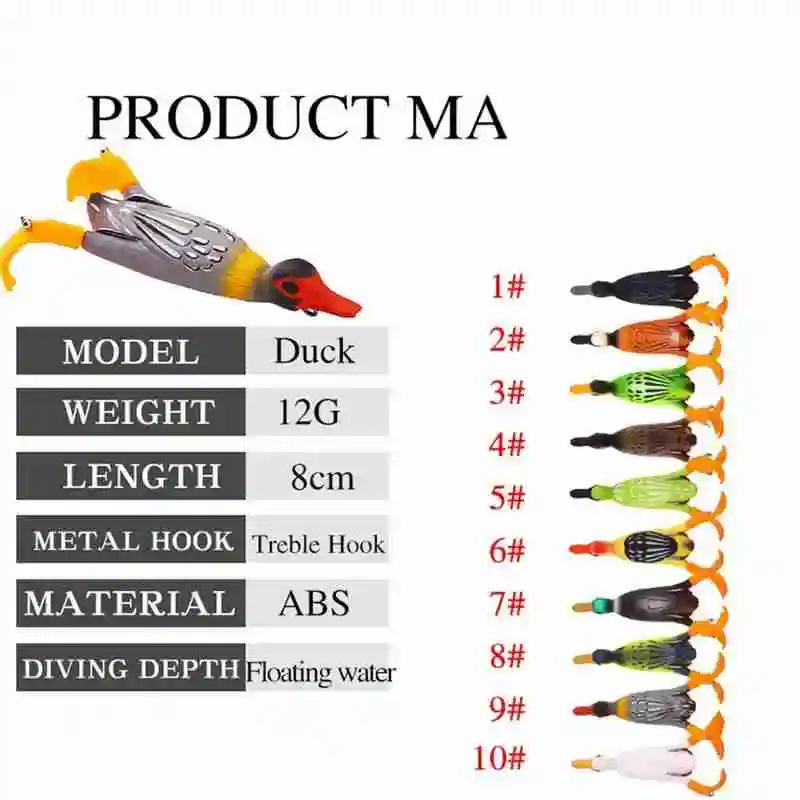 Форма утки с реалистичным внешним видом и цветом, яркая и привлекательная для рыб.