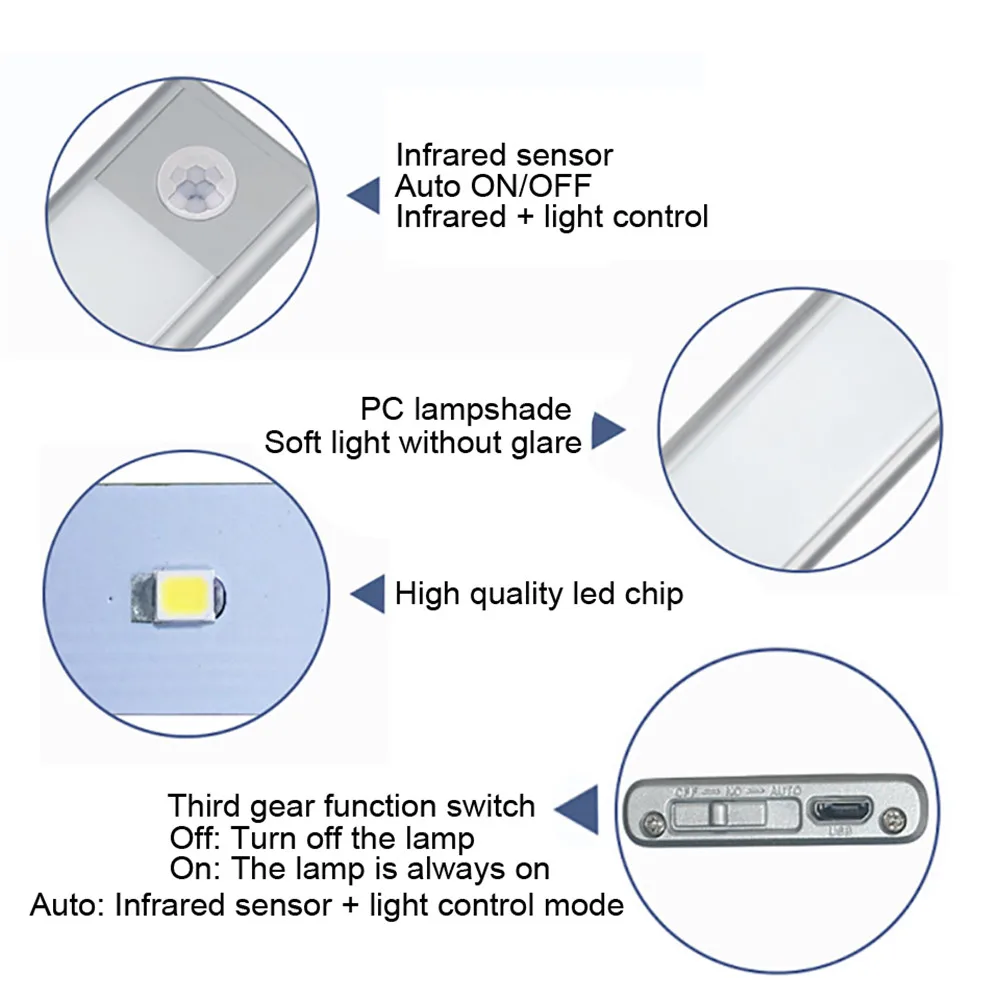 Ультра-тонкий PIR датчик движения светильник светодиодное освещение для шкафа светильник USB зарядка управление Умный ночной Светильник для кухни настенный шкаф