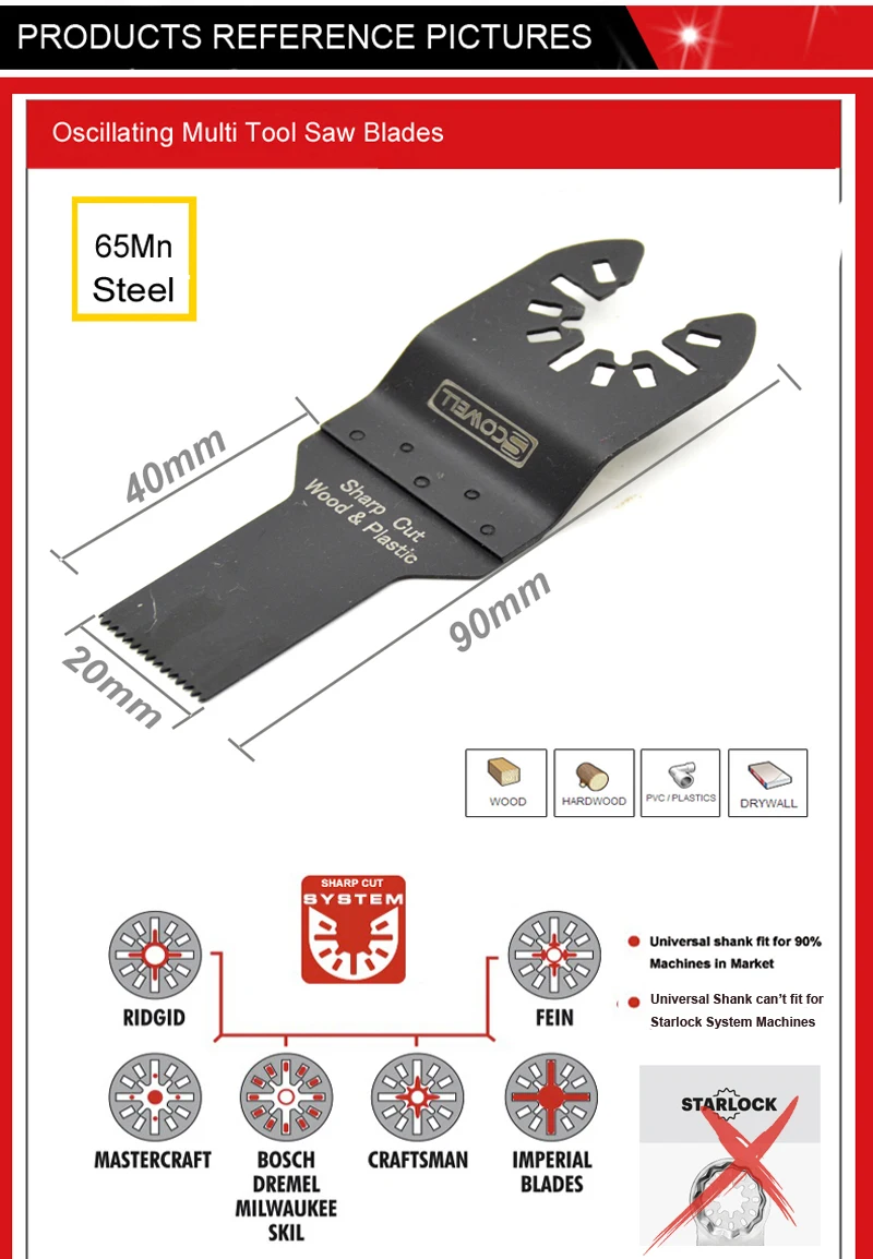 3. Изготовлен из 65Mn стали, подходит для резки дерева, пластика, гипсокартона и так далее.