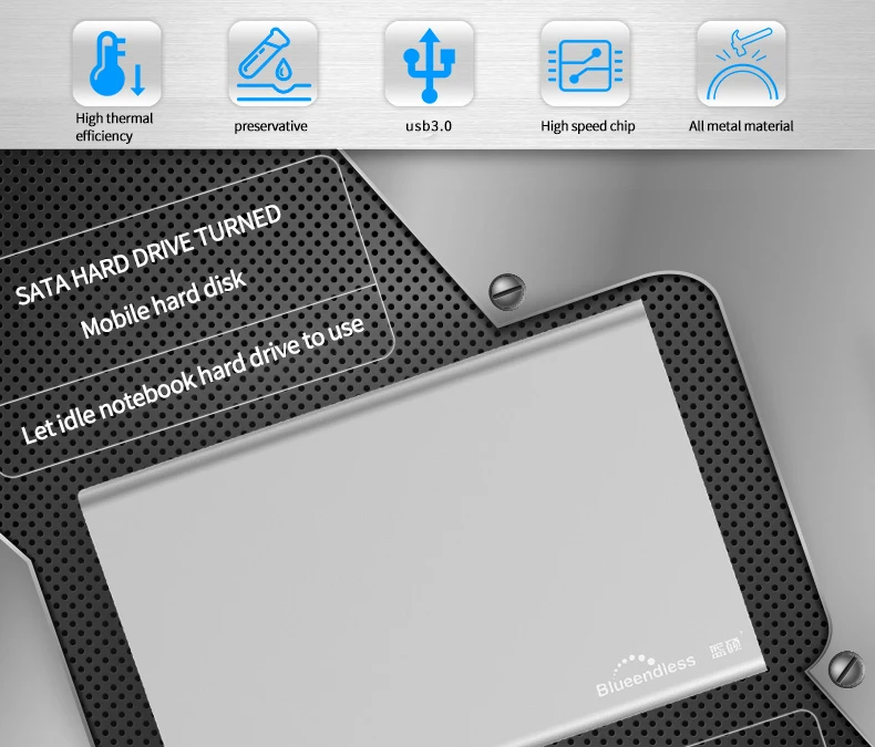 1. Легко открывается, уникальный дизайн 2. Цвет: серебристый 3. Чехол Материал: полностью из алюминия 4. Передача данных: USB 3,0 до 5 Гбит/с, USB 3,1 до 6 Гбит/с 5. Внутренний интерфейс: SATA 6. Поддержка 2,5 'SATA HDD до 4 ТБ 7. Система требований: для Macintosh OS 9,0 или более поздней версии, Linux,Windows 98SE / ME / 2000 / XP / 7 / 8 / 10 / Vista