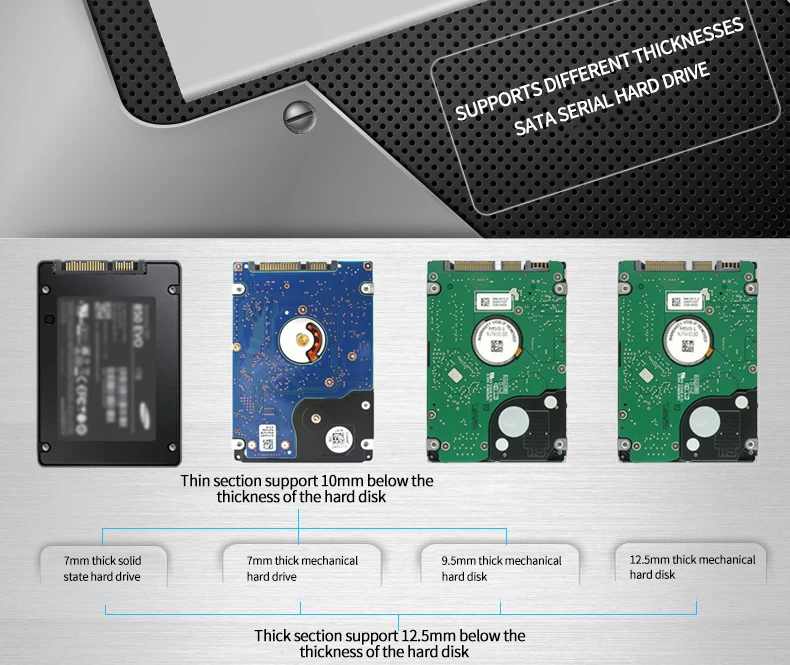 121*80*17 мм: для Жесткий диск толщиной менее 9,5 мм 121*80*21,5 мм: для жесткий диск с глубиной менее 15 мм