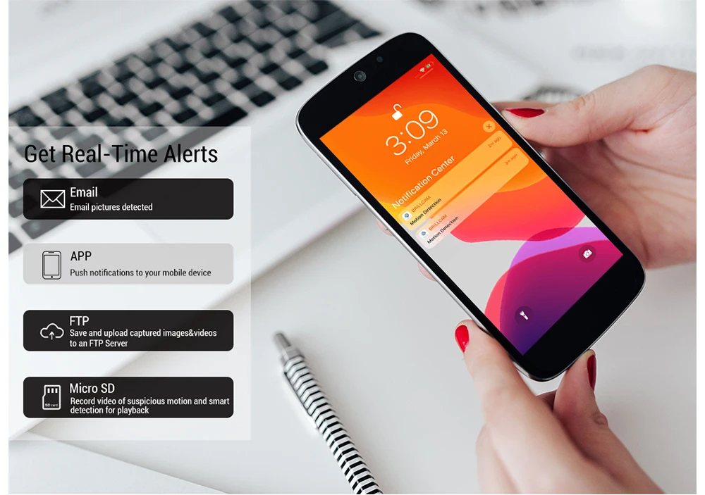 Получайте оповещения FTP/Email/App с любым подозрительным движением.
