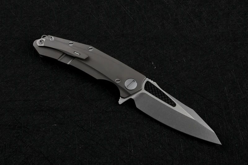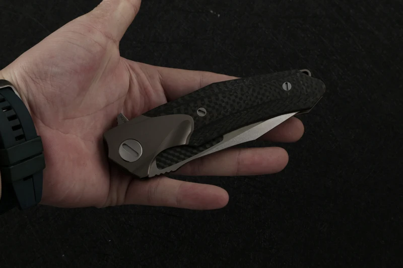 100% настоящий Кевин Джон новейший оригинальный дизайн с M390 + лезвие из углеродного волокна, 100% В наличии! Технические характеристики Общая длина: 9,055 "(230 мм) Длина лезвия: 3,858 "(98 мм) Режущая кромка: 3,543 "(90 мм) Ширина лезвия: 1,299 "(33 мм) (самый широкий) Лезвие Толщина: 0,149 "(3,8 мм) Материал лезвия: M390(60-61hrc) Отделка: атлас + каменная стирка Длина ручки: 4,960 "(126 мм) Ширина ручки: 1,141 "(29 мм) (самый широкий) Толщина ручки: 0,574 "(14,6 мм) Материал ручки: титановый сплав TC4 + пластырь из углеродного волокна/все титановые винты Вес: 5,3 oz. Нажмите на изображение для просмотра в полный размер (151 г) Открывалка для бутылок: Флиппер Система: KVT шариковый подшипник