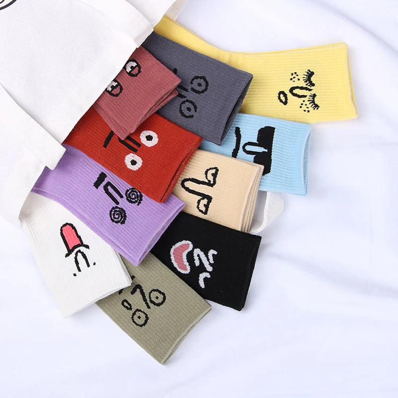 Упаковка: 1 пара женских носков с забавным лицом