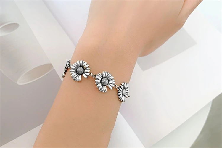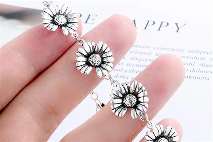 Бесплатная доставка Винтаж завод с подсолнечником цветок регулируемые браслеты из нержавеющей стали для женщин 925 стерлингового серебра в этническом стиле небольшой ромашки браслеты