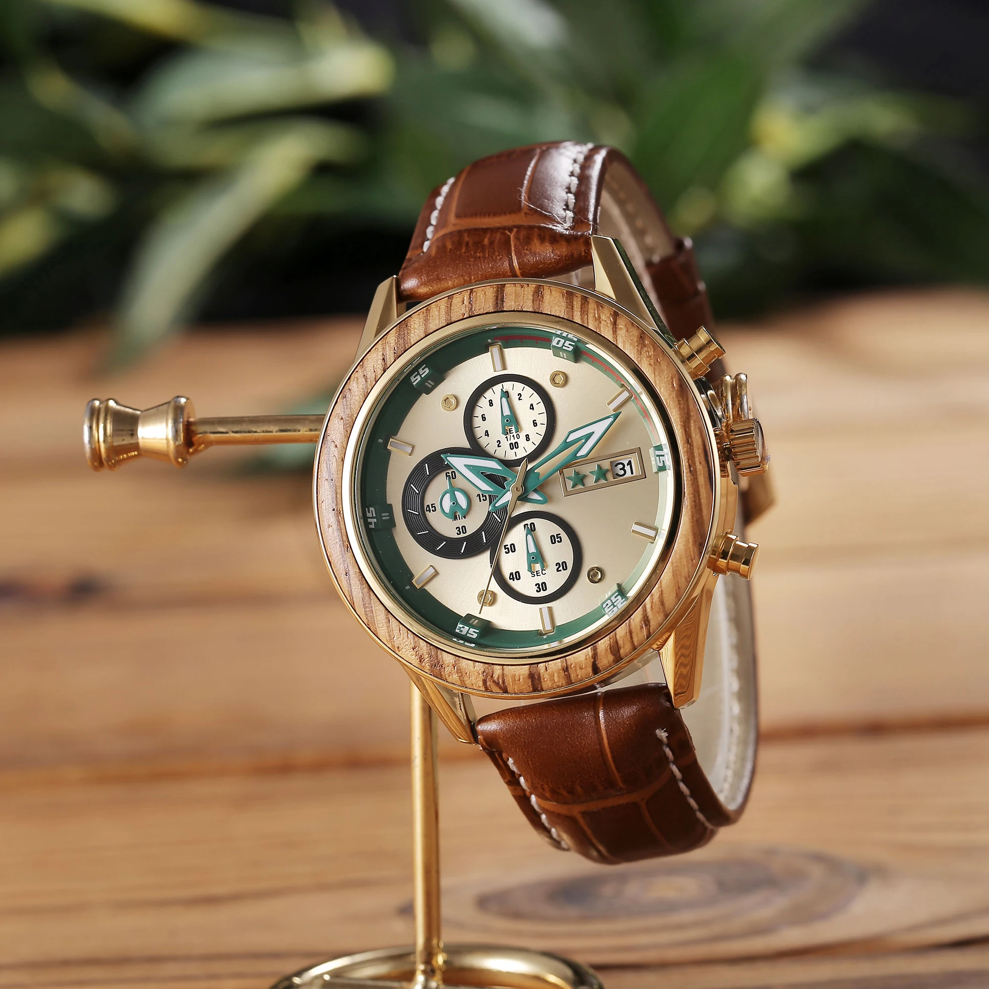 Мужские часы с большим циферблатом, многофункциональные кварцевые мужские часы с календарем, спортивные часы 1. Полностью ручной работы деревянный каркас. Дизайн корпуса большого размера и общая длина. Длина ремешка регулируется. 2, три глаза шесть указателей совпадают с авто датой лица, делает циферблаты выглядят красиво. 3. Крутая многофункциональная функция хронографа. 4. Натуральный деревянный материал и красивая текстура. Светильник экологически чистый.
