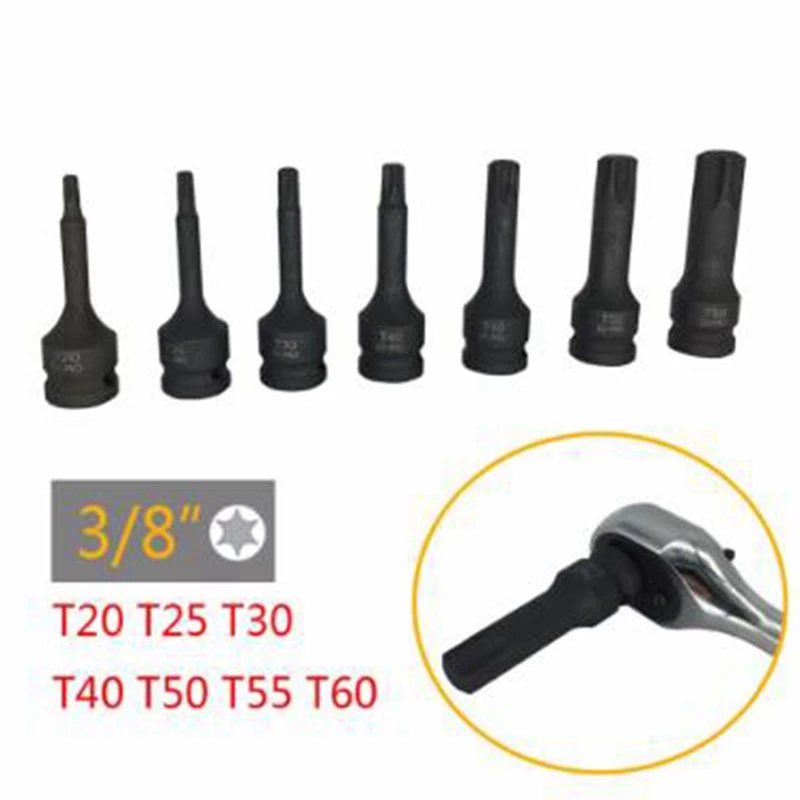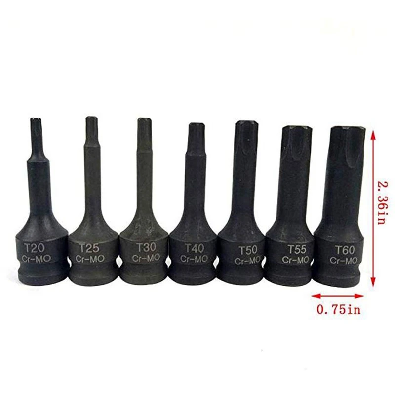 7 шт 3/8 дюйма Квадратный привод ударная звезда/торкс набор инструментов. Каждая розетка имеет Просверленный конец, чтобы облегчить сохранение Шарикового подшипника для использования на трещотках и полос выключателя.