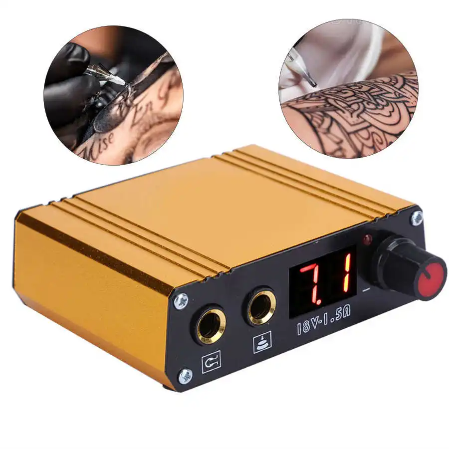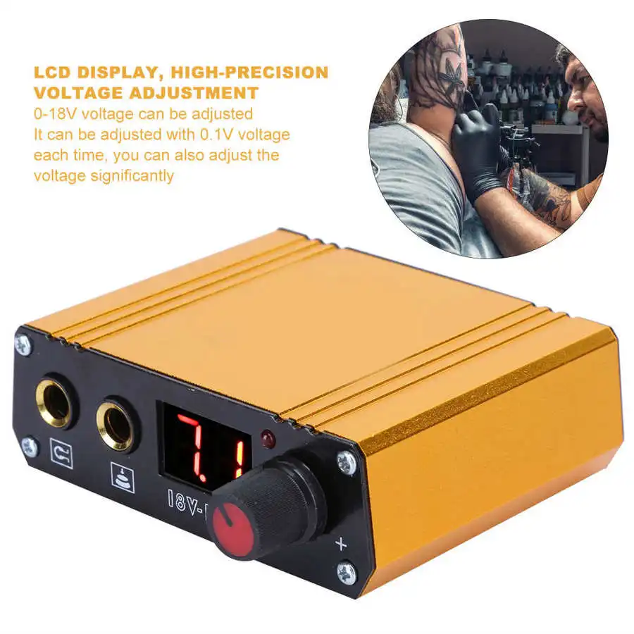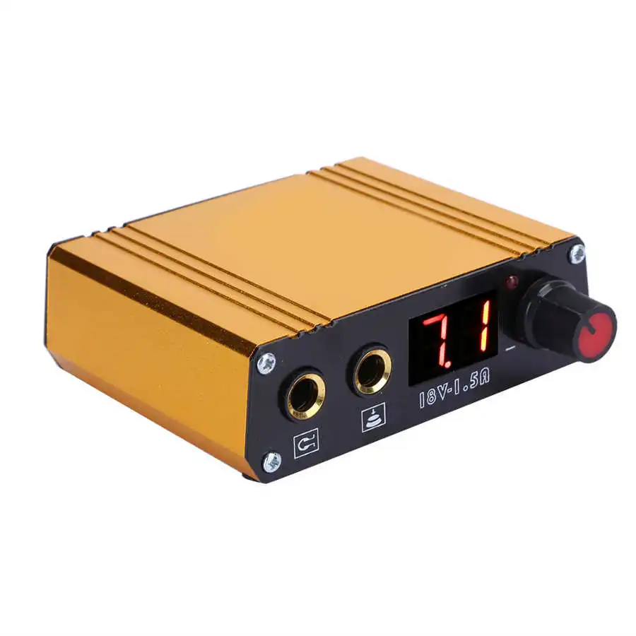 Профессиональный мини тату-машинка источник питания для татуировки ЖК-дисплей Золотой 100-230 В