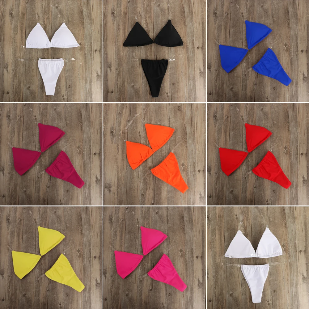 Женские прозрачные бретельки с воротником-хомутом, однотонные микро бикини-стринги, комплект бюстгальтера, стринги, сексуальный купальник пуш-ап, купальный Летний новый купальник