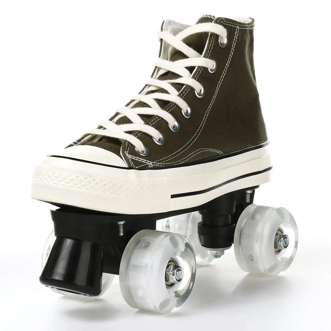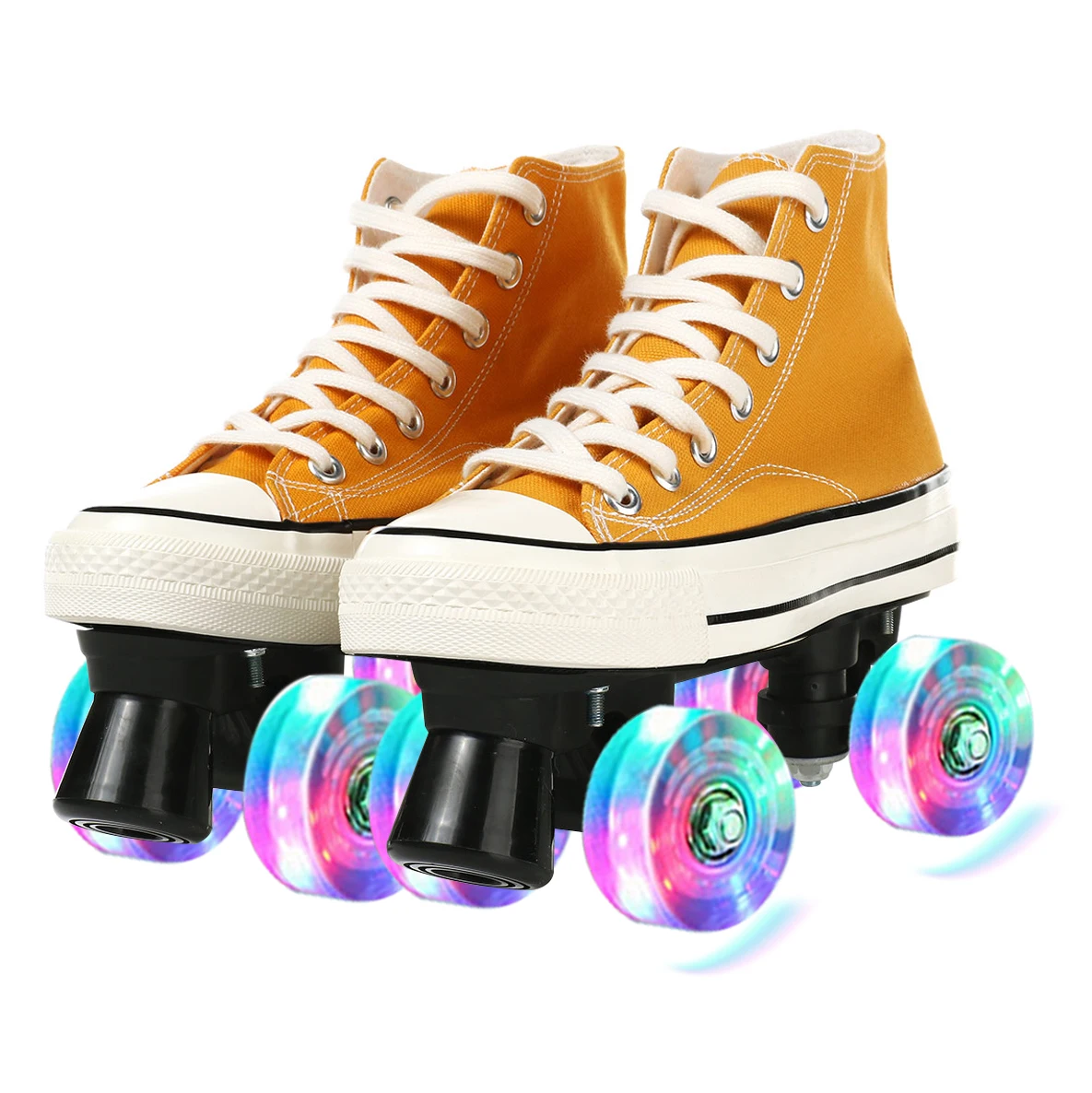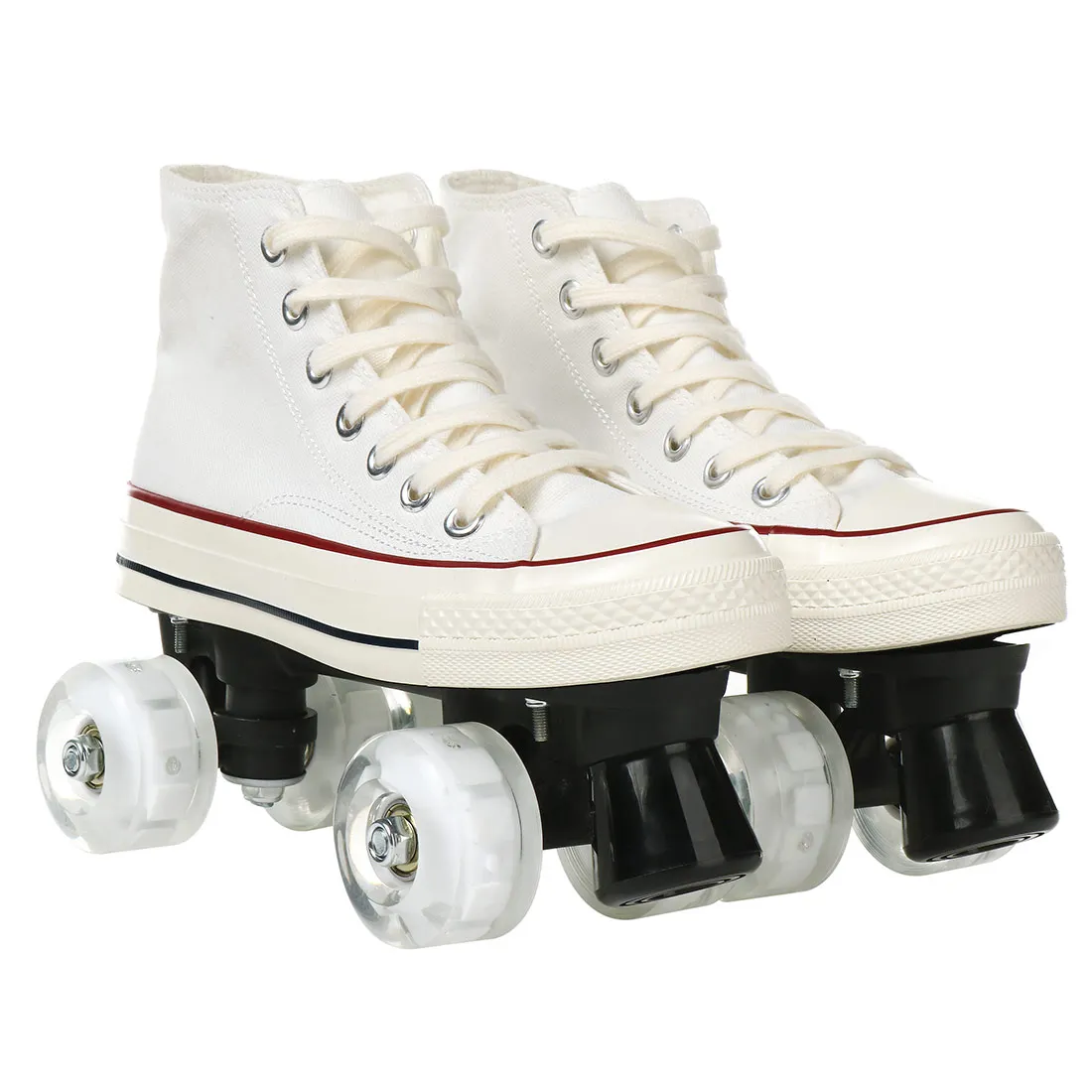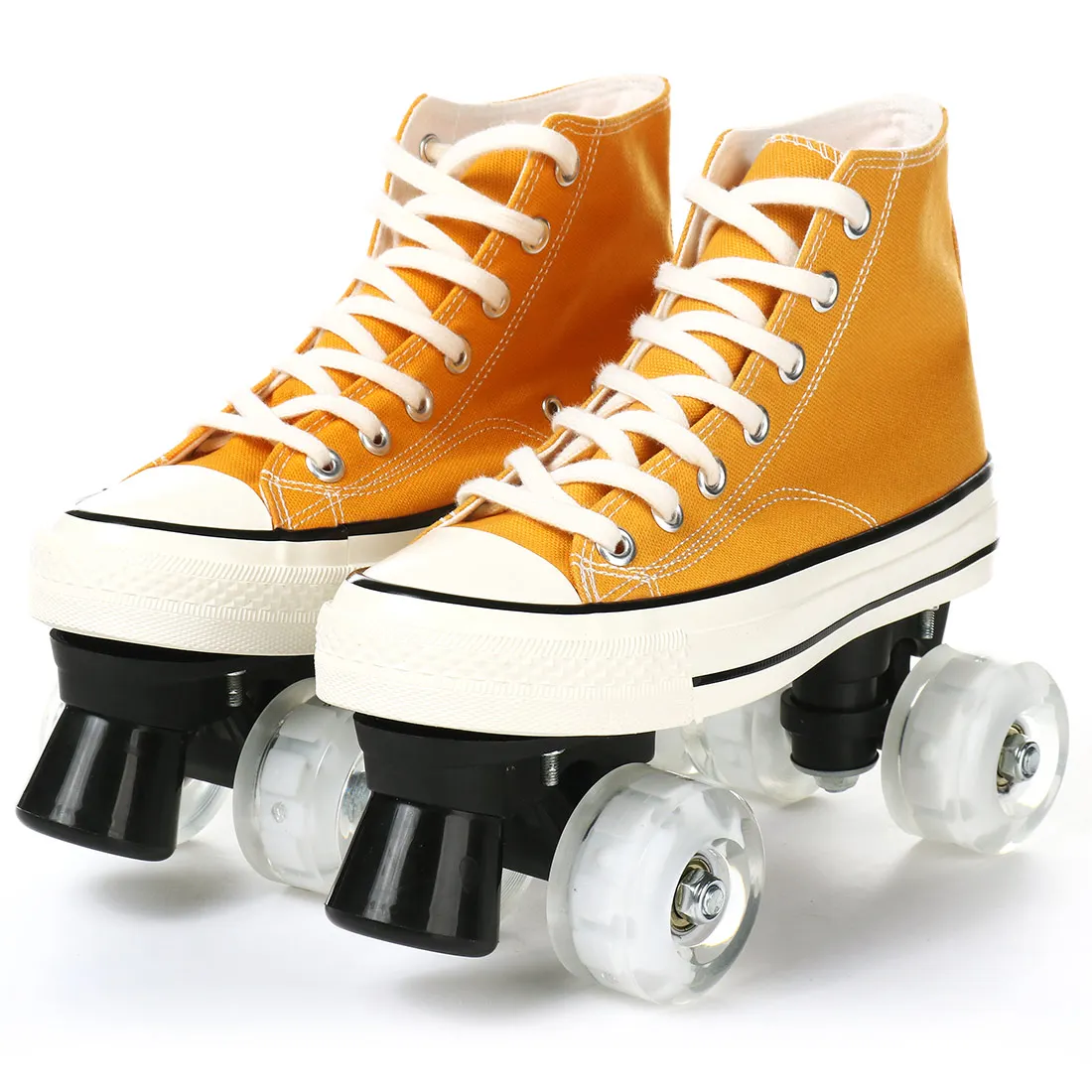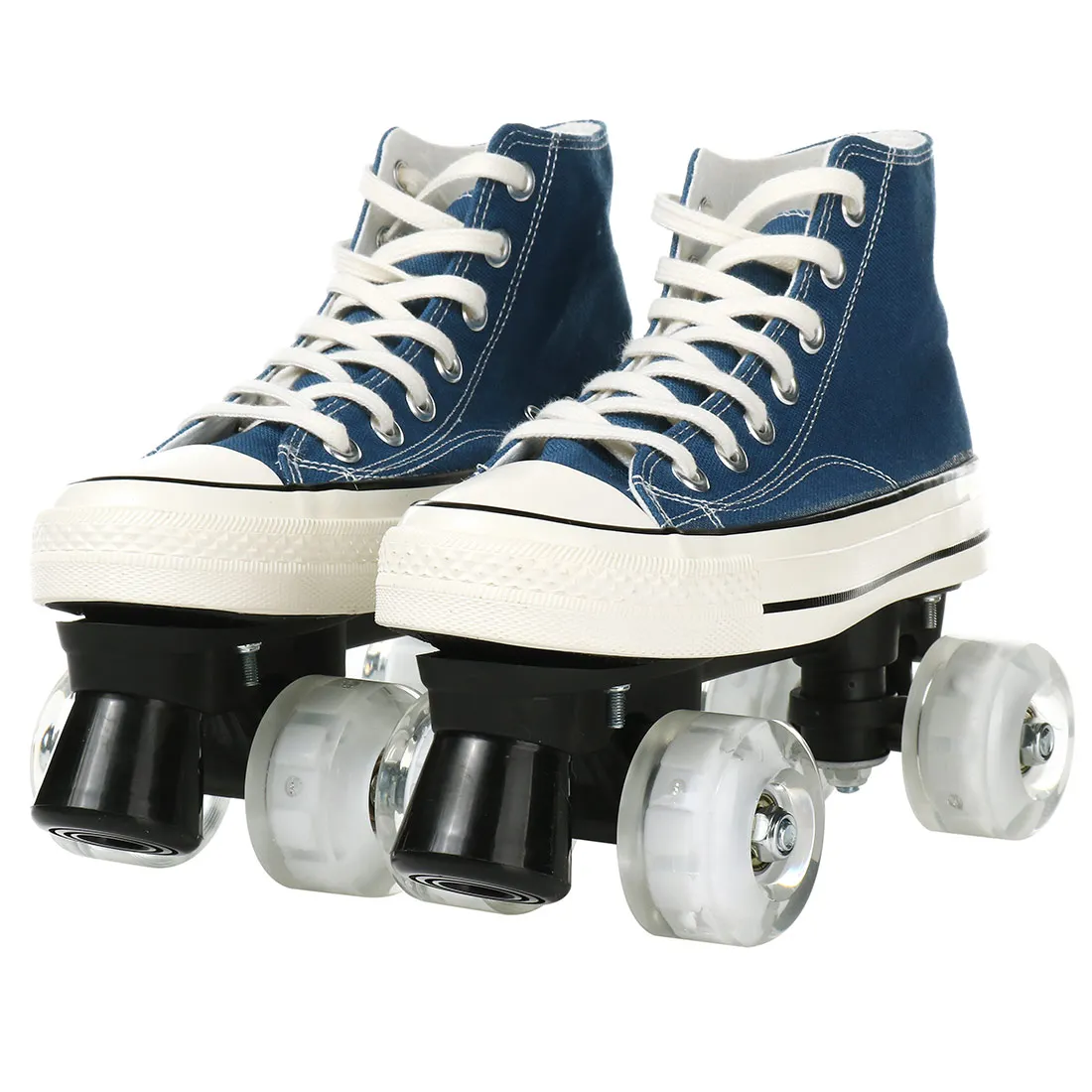 Полиуретановые резиновые и холщовые роликовые коньки, изысканные, разные размеры на выбор и четырехъядерные роликовые коньки, парусиновые, унисекс Двухлинейные коньки для взрослых детей, Двухлинейные коньки, обувь для катания на коньках со светодиодами