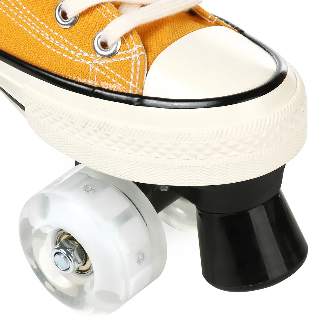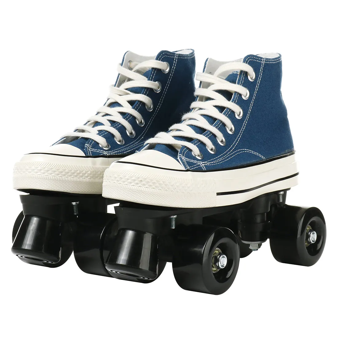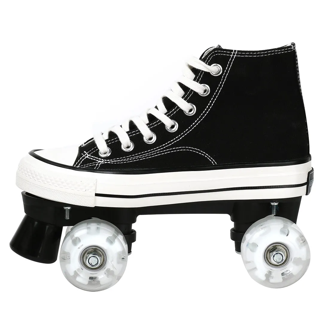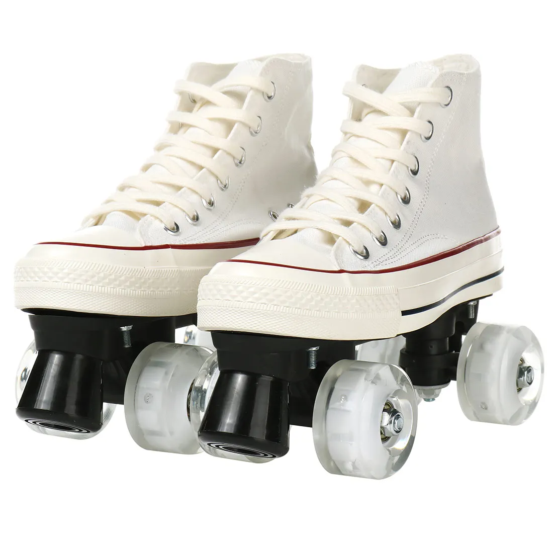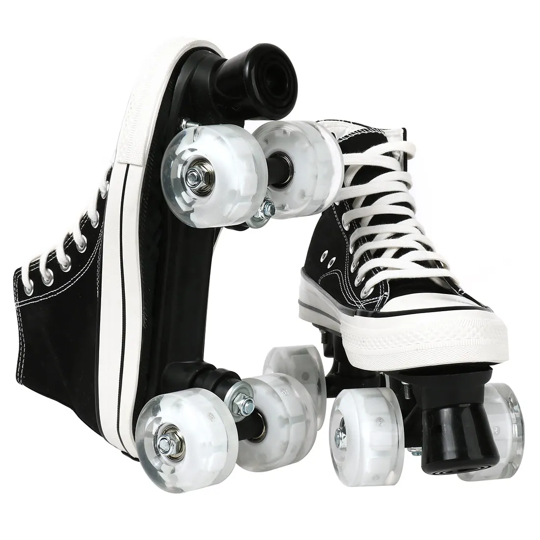 Полиуретановые резиновые и холщовые роликовые коньки, изысканные, разные размеры на выбор и четырехъядерные роликовые коньки, парусиновые, унисекс Двухлинейные коньки для взрослых детей, Двухлинейные коньки, обувь для катания на коньках со светодиодами
