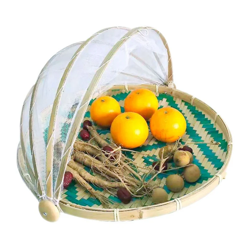 1. Материал: бамбук. Круглый, 2. Купол с сетчатым покрытием, чтобы предотвратить попадание насекомых. Крышка убирается для удобного хранения 3. Защита окружающей среды, светильник, легко носить с собой. Полезная модель подходит для пикников или хранения любых продуктов питания или небольших мелочей 4.это Многофункциональная Корзина для поставок, хранения или демонстрации фруктов, овощей, хлеба, продуктов питания 5. Он также может быть использован как ваш ключ, кошелек и мобильный телефон блюдо. Идеальная витрина для продуктов, которые хранят фрукты, хлеб и сухие товары дома и на фотографиях. Обратите внимание, что эти изделия ручной работы могут отличаться на ± 1 дюйм