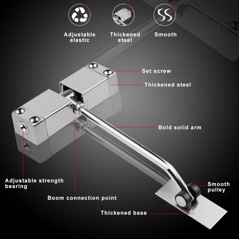 5. Надежно закрывайте двери этим автоматическим доводчиком. Доступно для высоких транспортных зон и протестировано, чтобы выдерживать непрерывные открытые циклы. Регулируемая самозакрывающаяся дверь подходит для жилых/коммерческих целей. Идеально подходит для противоугонных дверей, пластиковых стальных дверей, деревянных дверей, дверей из алюминиевого сплава и других дверей.