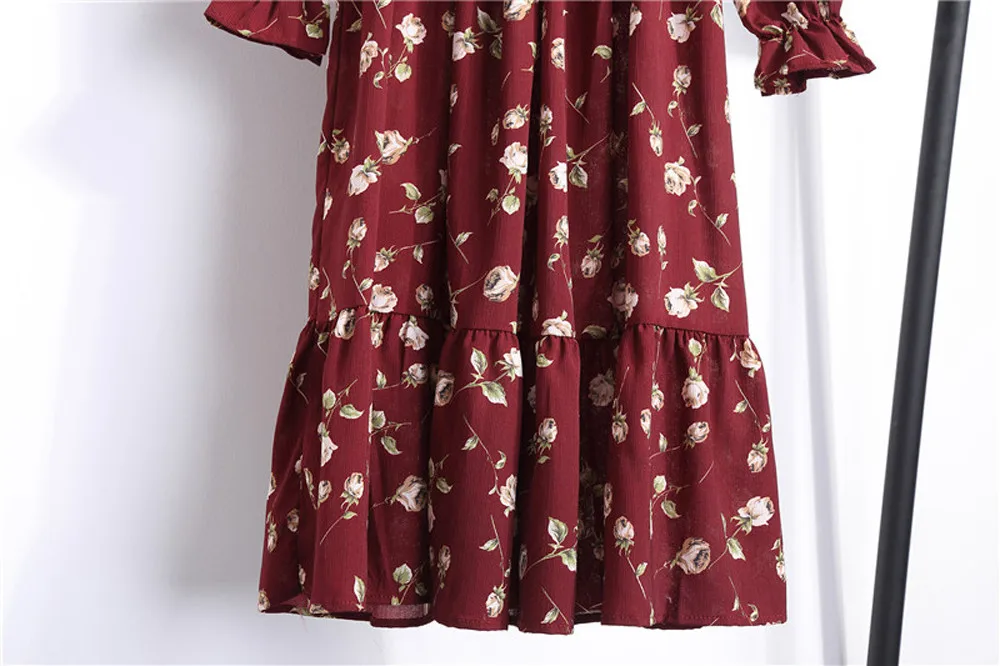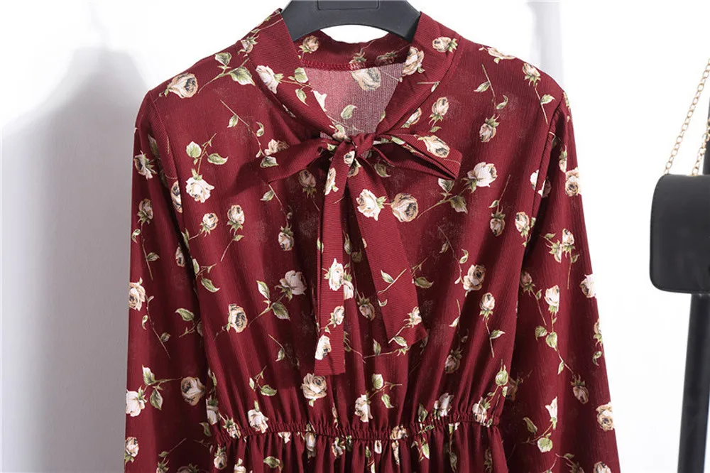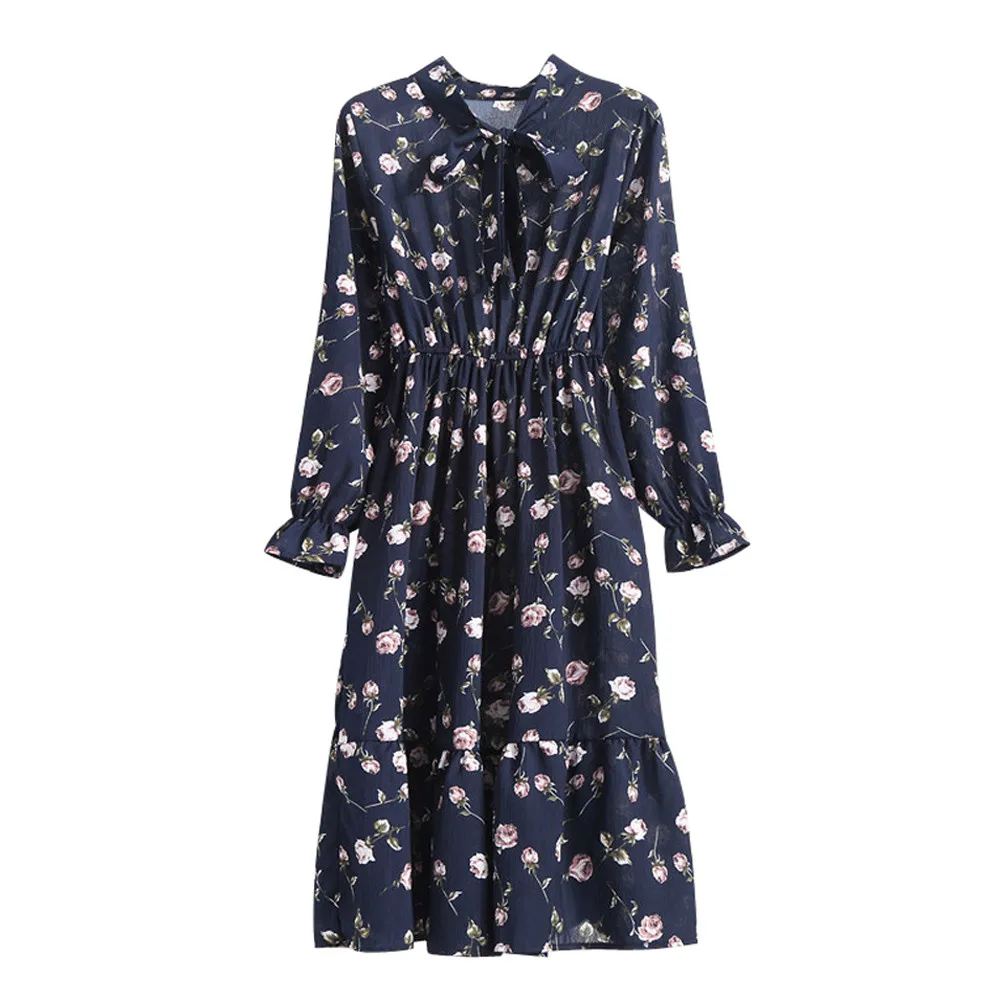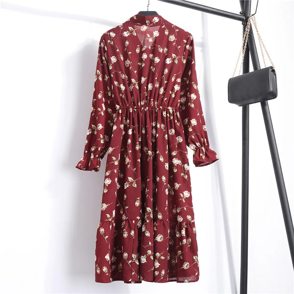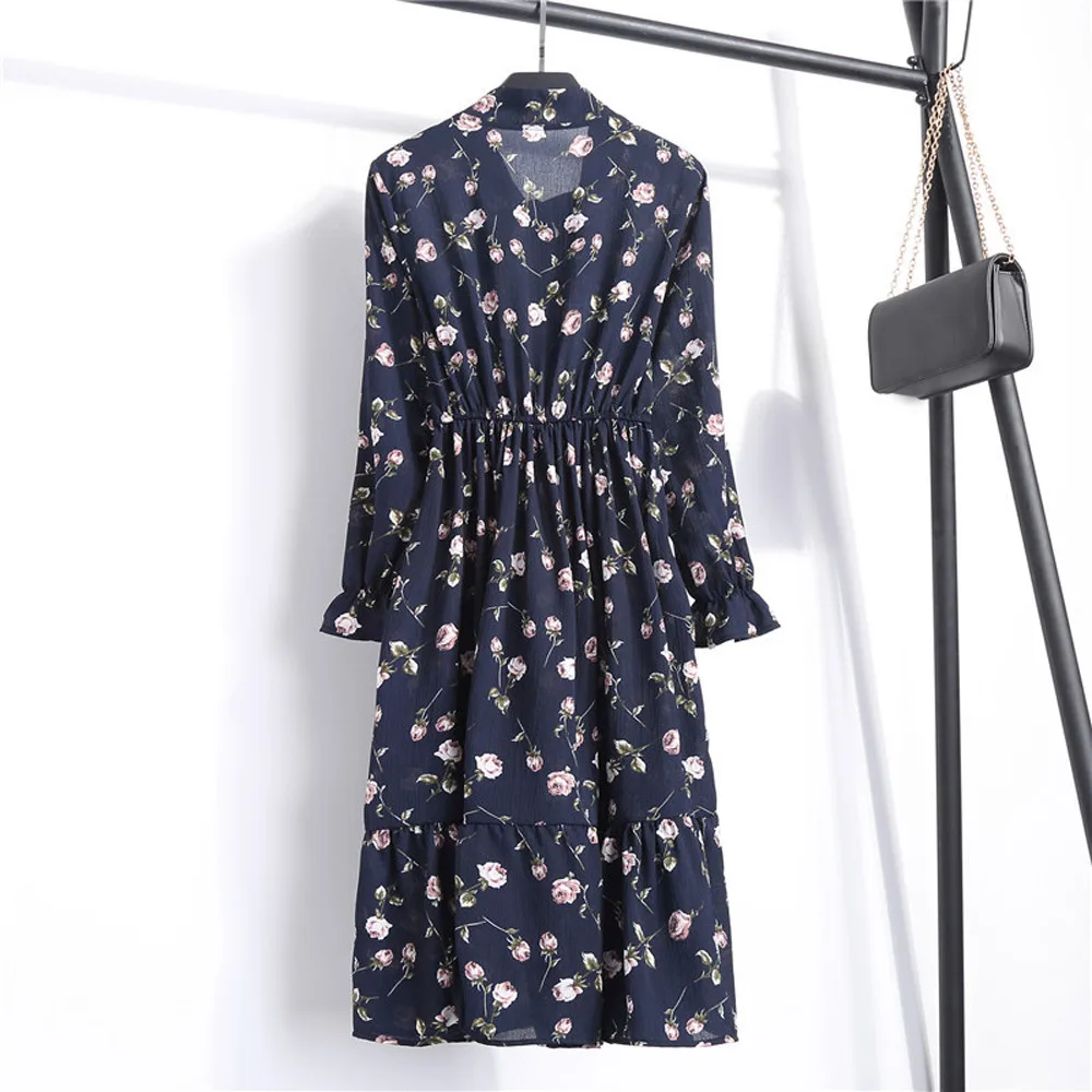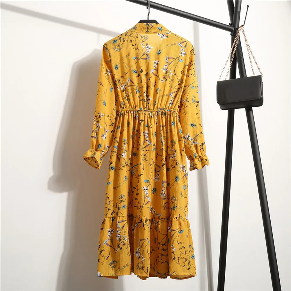 Женское шифоновое платье с цветочным принтом и длинным рукавом, Повседневные Вечерние платья в стиле бохо