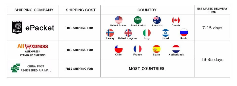 Если вам нужна посылка, отправленная DHL, FEDEX, Aramex, EMS, UPS, пожалуйста, свяжитесь с нами. Мы будем обновлять доставку для вас.